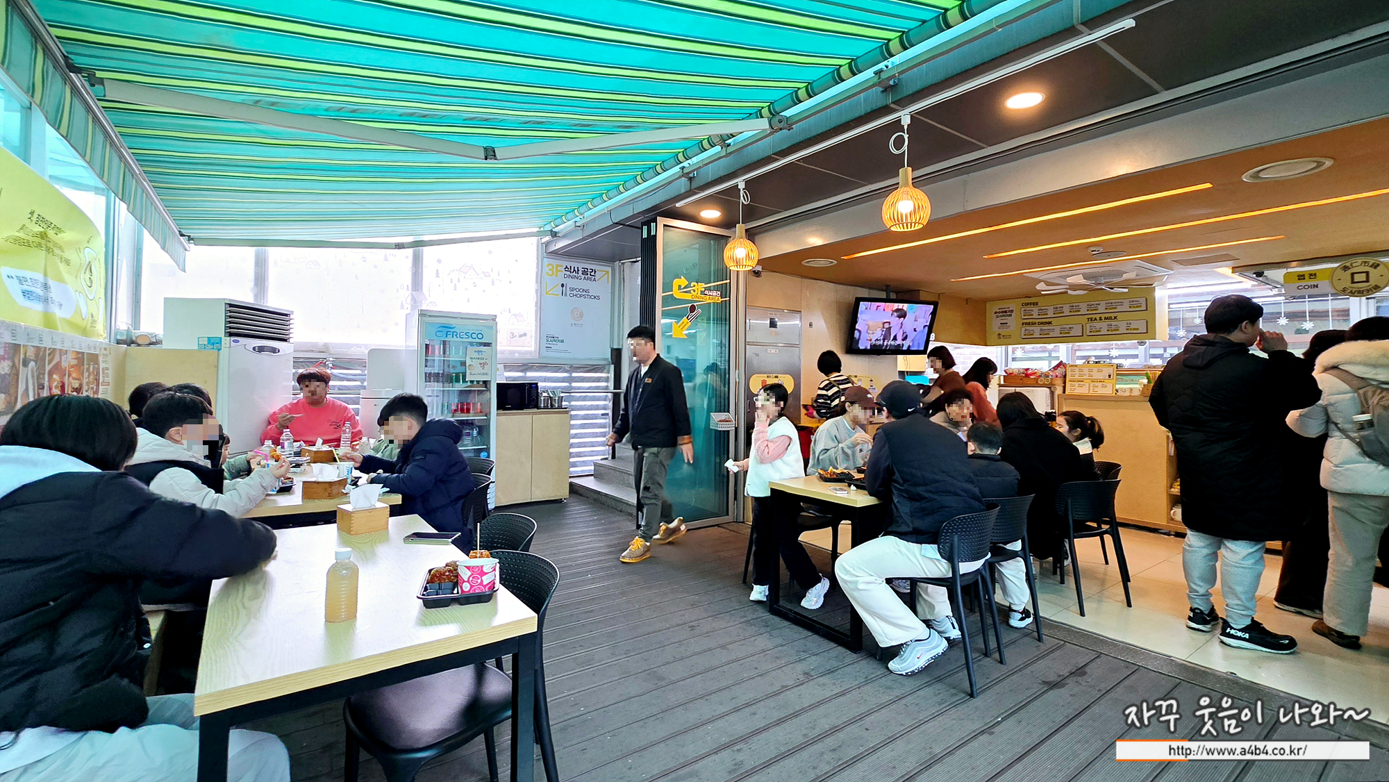 먹고싶은 음식들을 모두 구입하고, 다시 통인시장 엽전을 구입했던 엽전도시락 건물로 다시 옵니다. 통인시장 도시락카페는 2층과 3층에 테이블이 마련되어 있는데요. 조금 복잡하기는 하지만 그래도 그럭저럭 오래 대기타지 않고 식사 가능합니다. 저희는 3층으로 이동