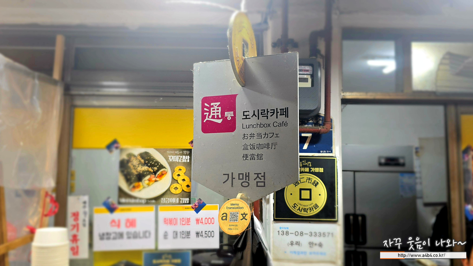 구입한 엽전을 가지고 통인시장을 돌아다니면 대부분의 업소에 아래와 같은 통인시장 도시락카페 가맹점 표지가 걸려 있습니다. 이곳에서만 엽전 사용이 가능하니 참고하세요.