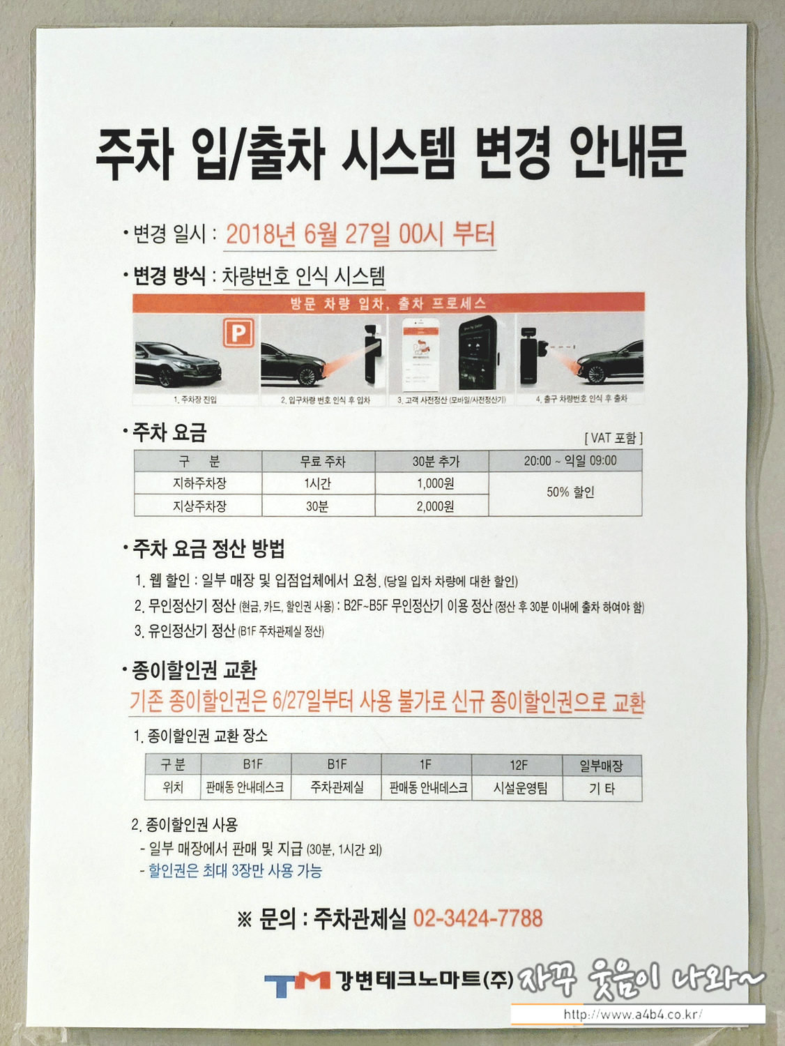 | 강변 테크노마트 무료주차 최대 시간은 4시간