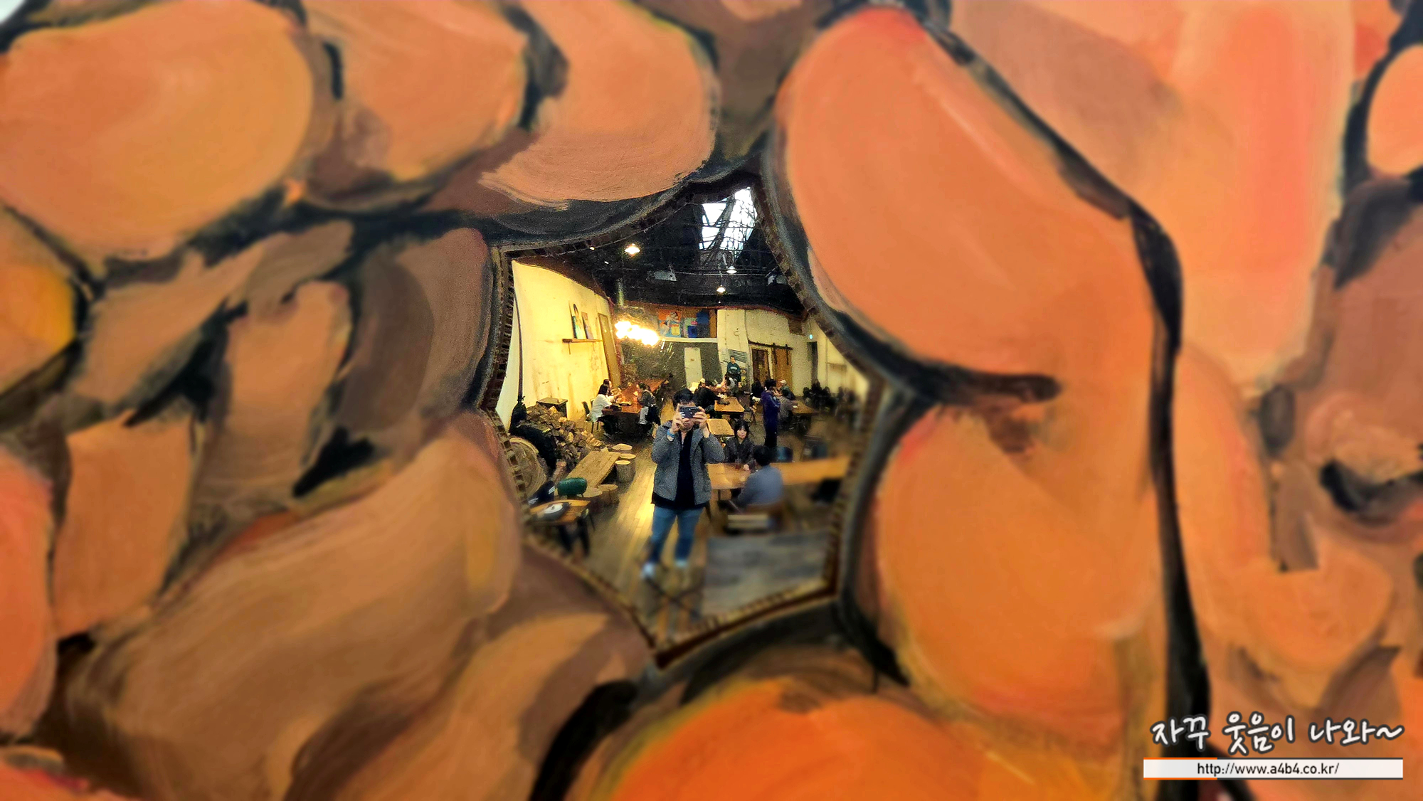 설수동 대림창고 카페 벽변에는 구나현 작가의 캔버스 작품이 전시되어 있으니 테이블에 앉아 커피 드시는 분 방해되지 않게 조심해서 다니시면서 작품 감상하시면 됩니다.