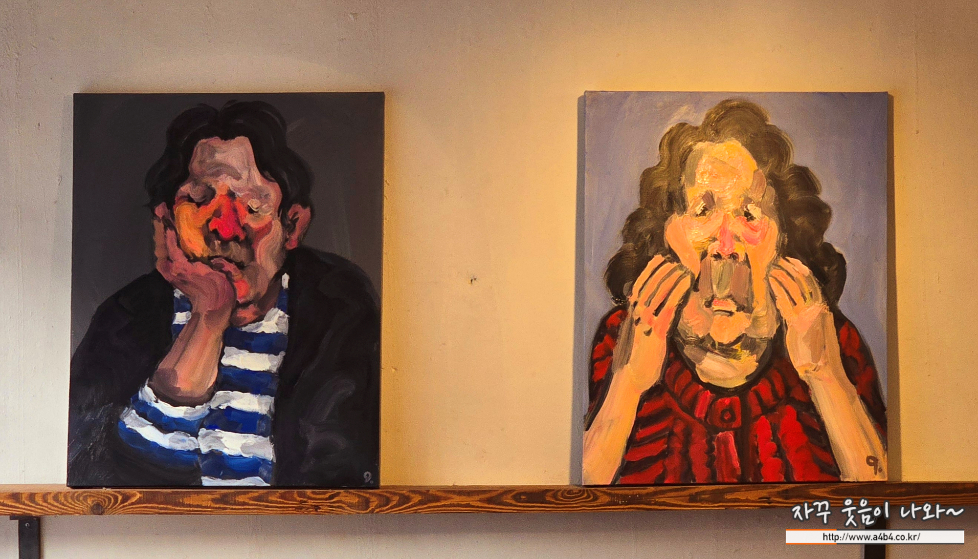 성수동 대림창고 카페 입구 작은 공간에도 구나현 작가의 구겨진 얼굴 작품들을 만나볼 수 있습니다.
