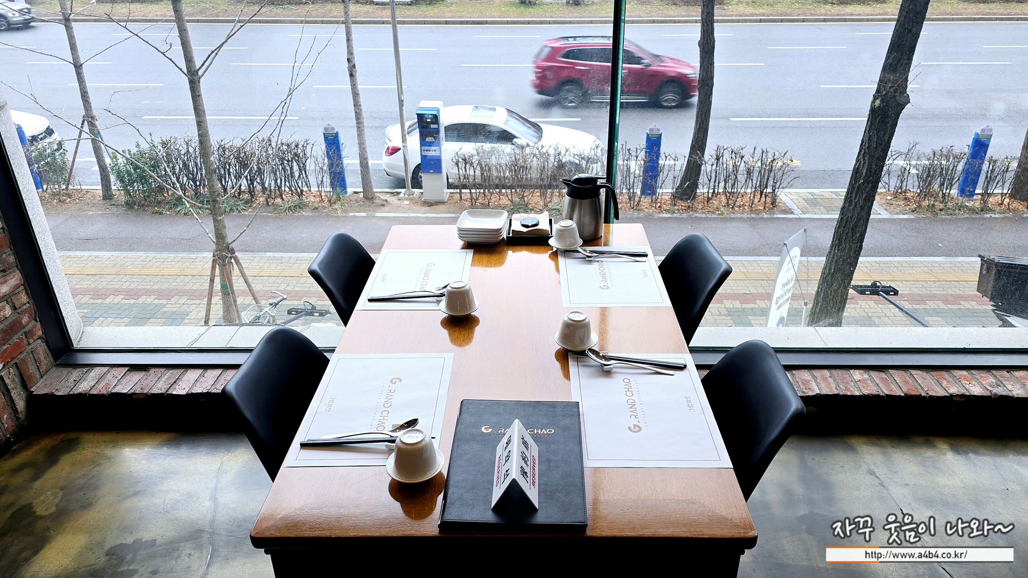 저희는 그랑차오 창가로 안내 받았는데요. 오히려 경치는 룸보다 더 좋습니다. 올림픽공원이 한 눈에 보이는 위치네요. 봄이나 가을에 방문하면 상당히 이쁜 자리가 될 것 같네요.