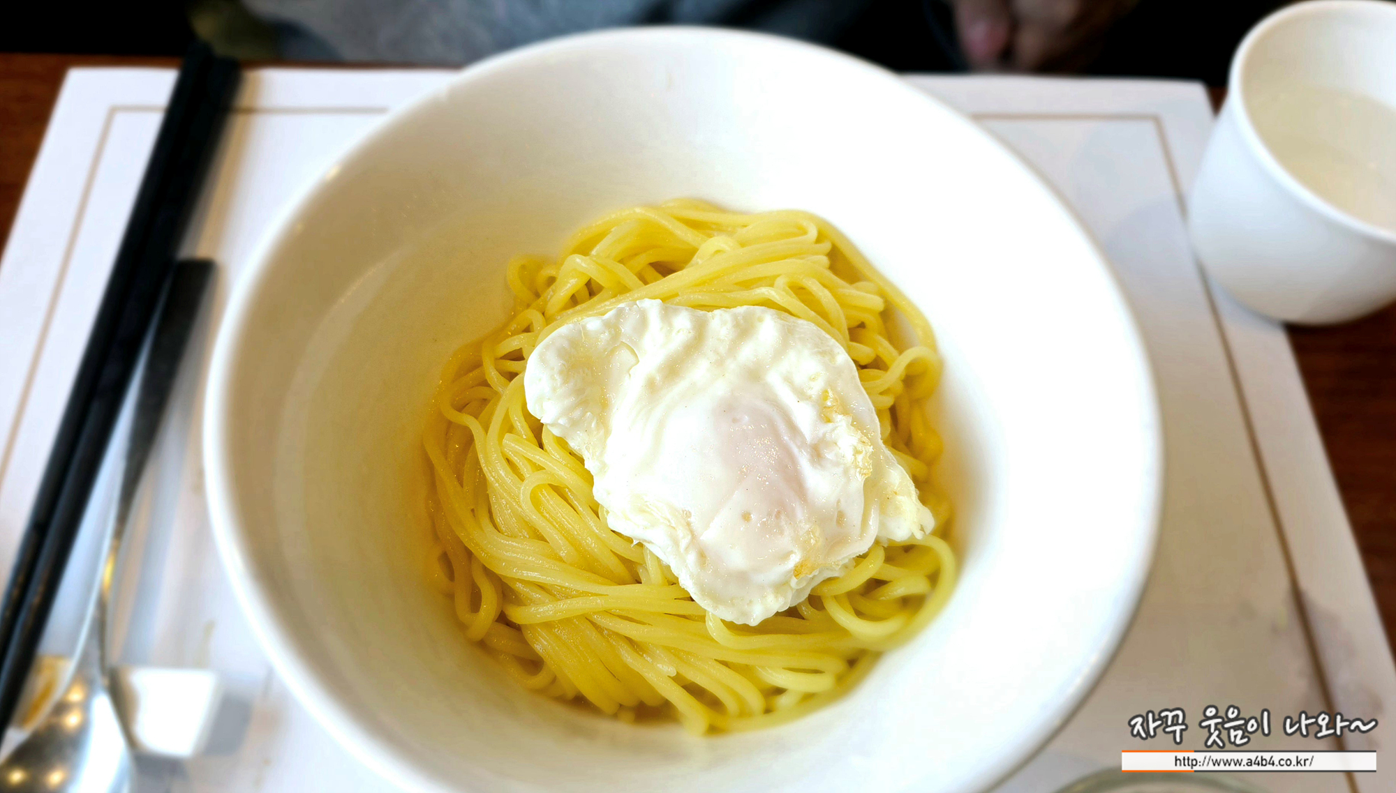 상당히 푸짐한 양을 보여주는 잡채밥입니다. 계란국물이 같이 나오고요.