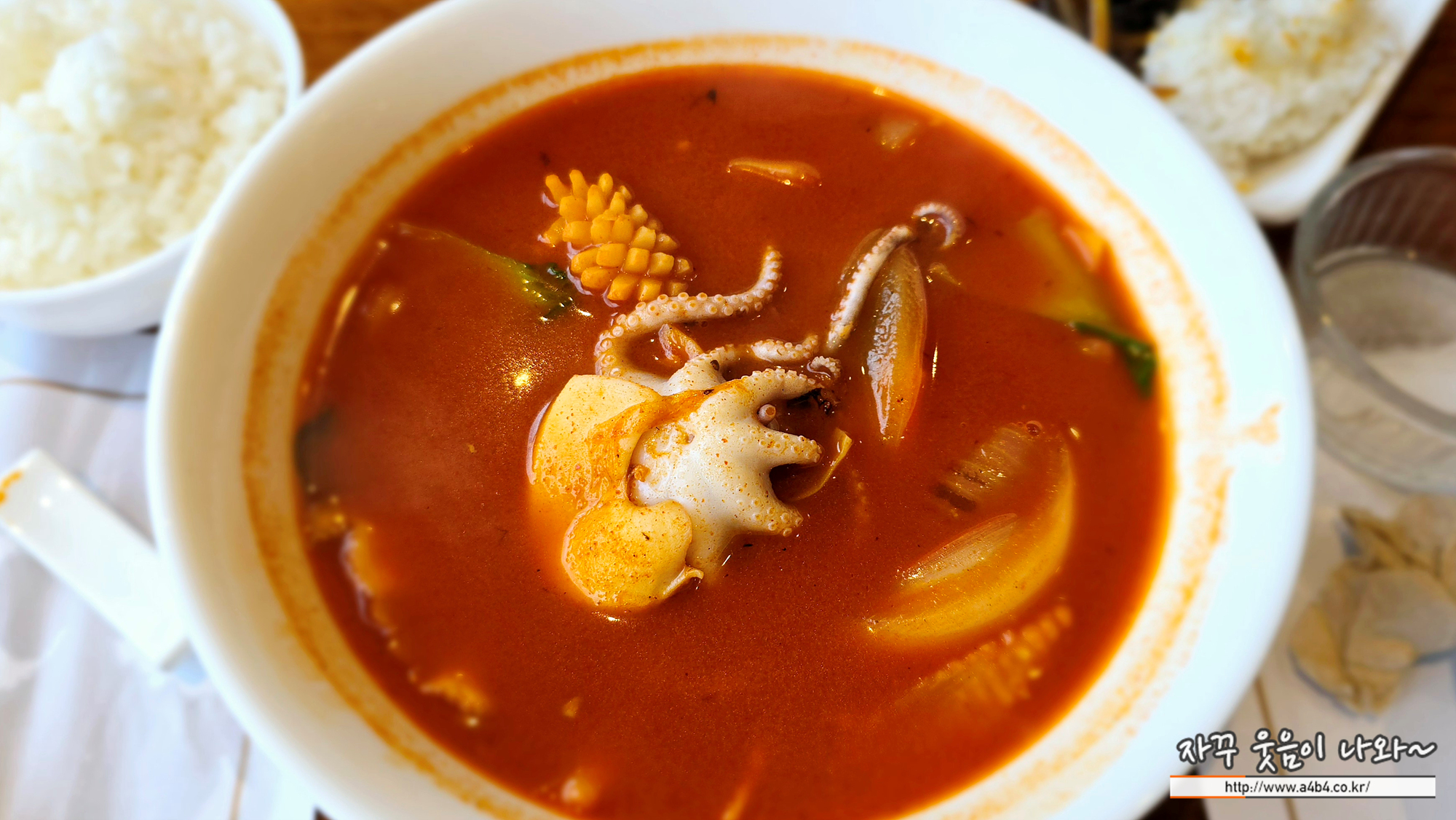 낙지 한 마리가 들어간 삼선짬뽕밥입니다. 짬뽕이 짜기는 하지만 이곳 그랑차오 짬뽕은 짜도 짜도 너무 짜네요. 아마도 조리중에 실수하지 않으셨나 할 정도로 짠맛을 보입니다. 중간에 물을 탈 정도였는데요.