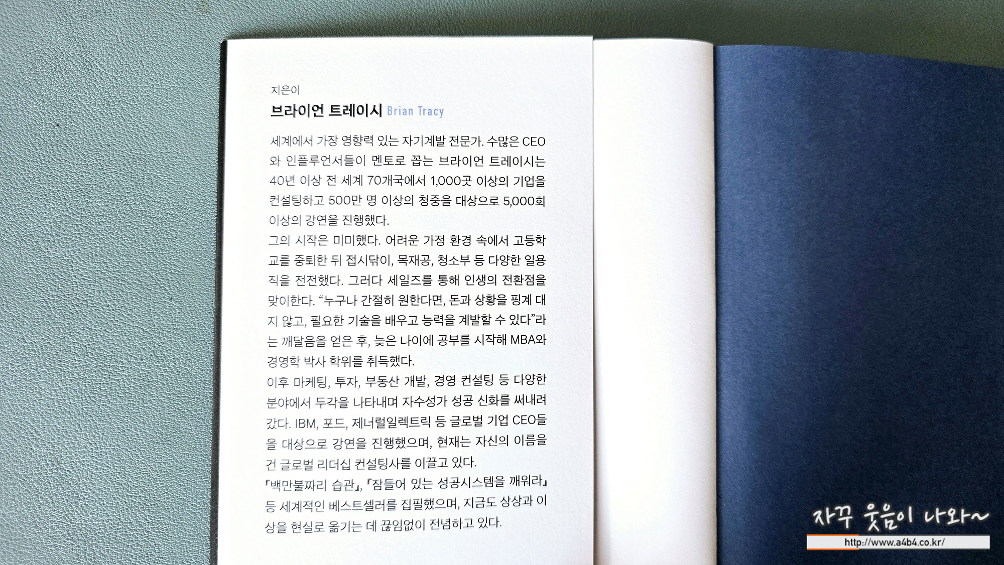 "행동하지 않으면 인생은 바뀌지 않는다."의 저자 브라이언 트레이시(Brian Tracy)는 세계적인 자기계발 전문가이자 성공학 강연자로, 목표 설정, 시간 관리, 리더십, 세일즈, 동기부여 등의 주제를 다룬 여러 베스트셀러를 집필한 인물입니다. 암튼 본인은 성공했음...