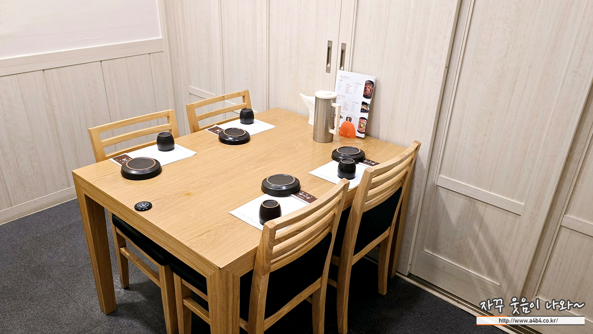 태이재는 지상 1층과 2층을 이용하고 있고요. 1층은 4인 룸과 4인 테이블로 구성되어 있습니다. 오픈한지 4개월 정도 되었다고 하시는데, 건물과 시설은 깔끔하게 잘 관리되어 있습니다.