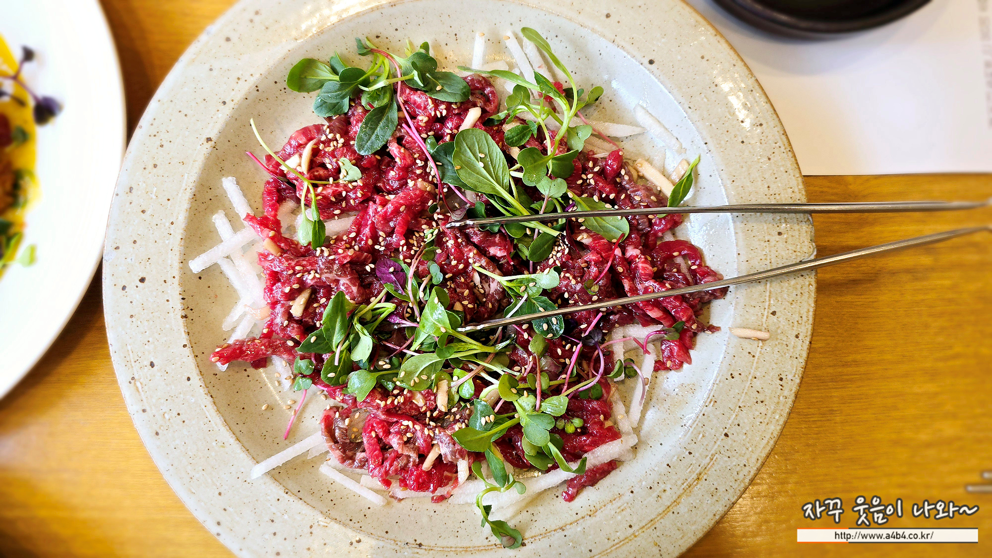 한우육회 맛을 설명하기 어려운데요. 딱 한우육회 입니다. 한우고기 신선하고요. 맛있게 잘 먹었습니다.