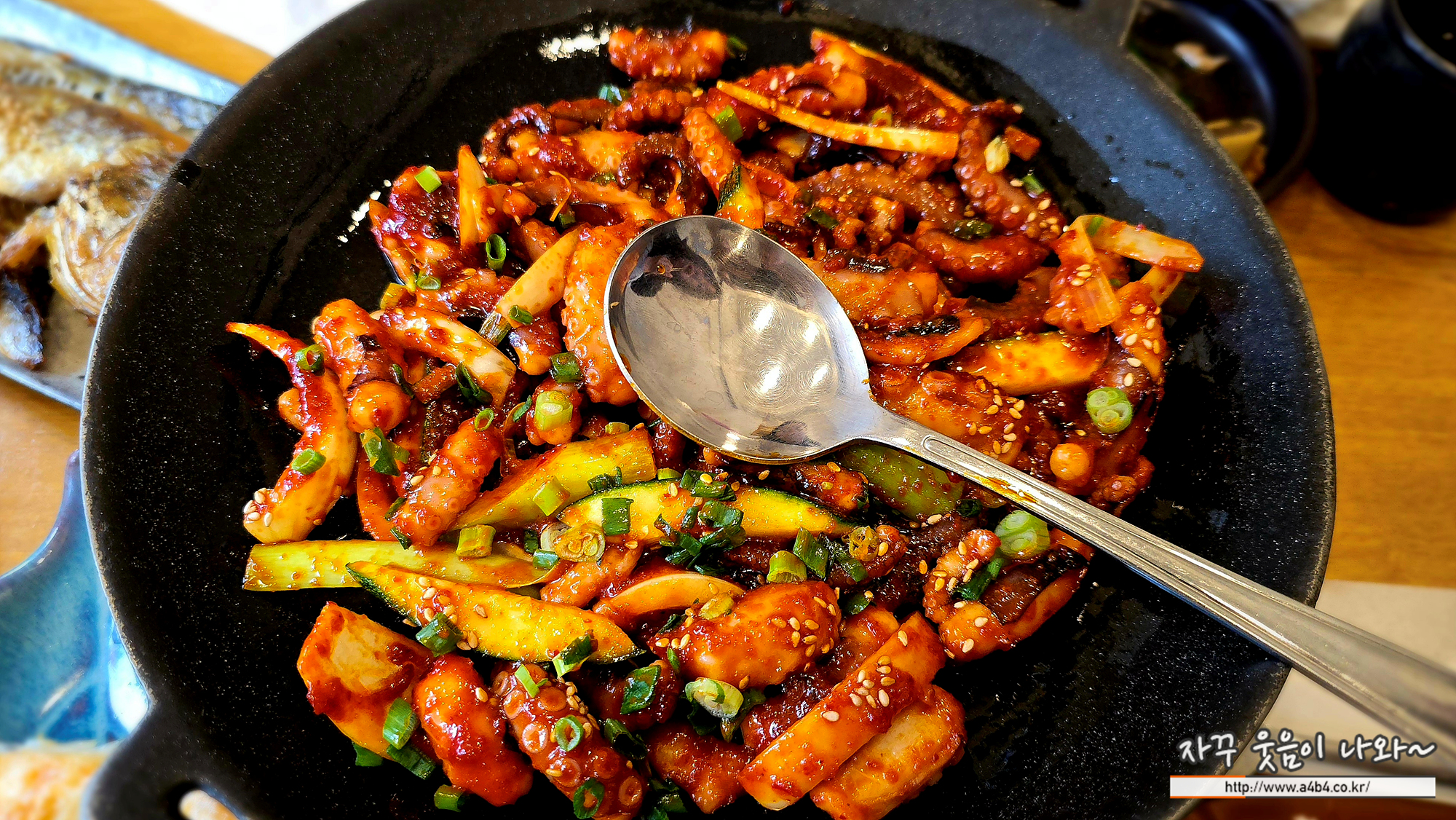 맵기는 보통 맵기를 보이네요. 조금만 더 매웠으면 좋았을... 국물없는 낙지볶음 메뉴입니다.
