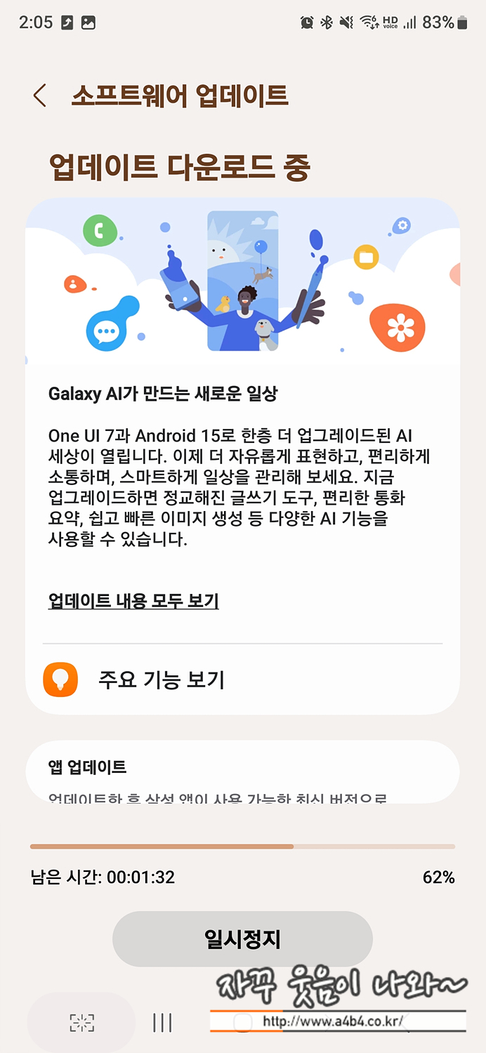 저는 기존에 one UI 6.0을 사용하고 있었고요. 계속 6.1로 업데이트 알림이 출력되었지만 업데이트 하면 ADB 사용한 카메라 무음 설정을 다시하고 굿락 다시 설정하는 등의 불편이 있어 매번 미뤘는데요. 원 UI 7.0 유혹을 뿌리치지 못하고 업데이트 진행합니다. 다만 한 번에 업데이트 되지 않고 총 두 번의 업데이트와 재부팅 과정이 진행되었습니다.