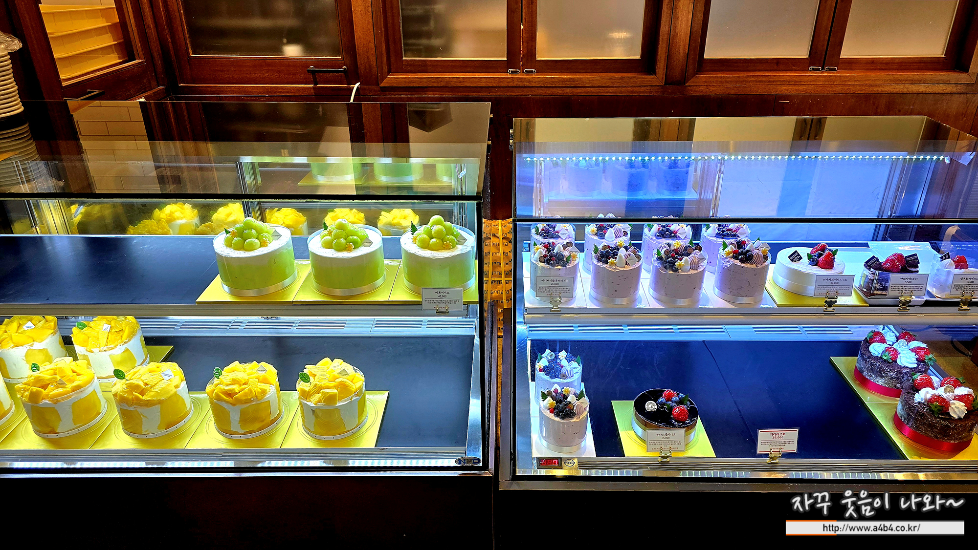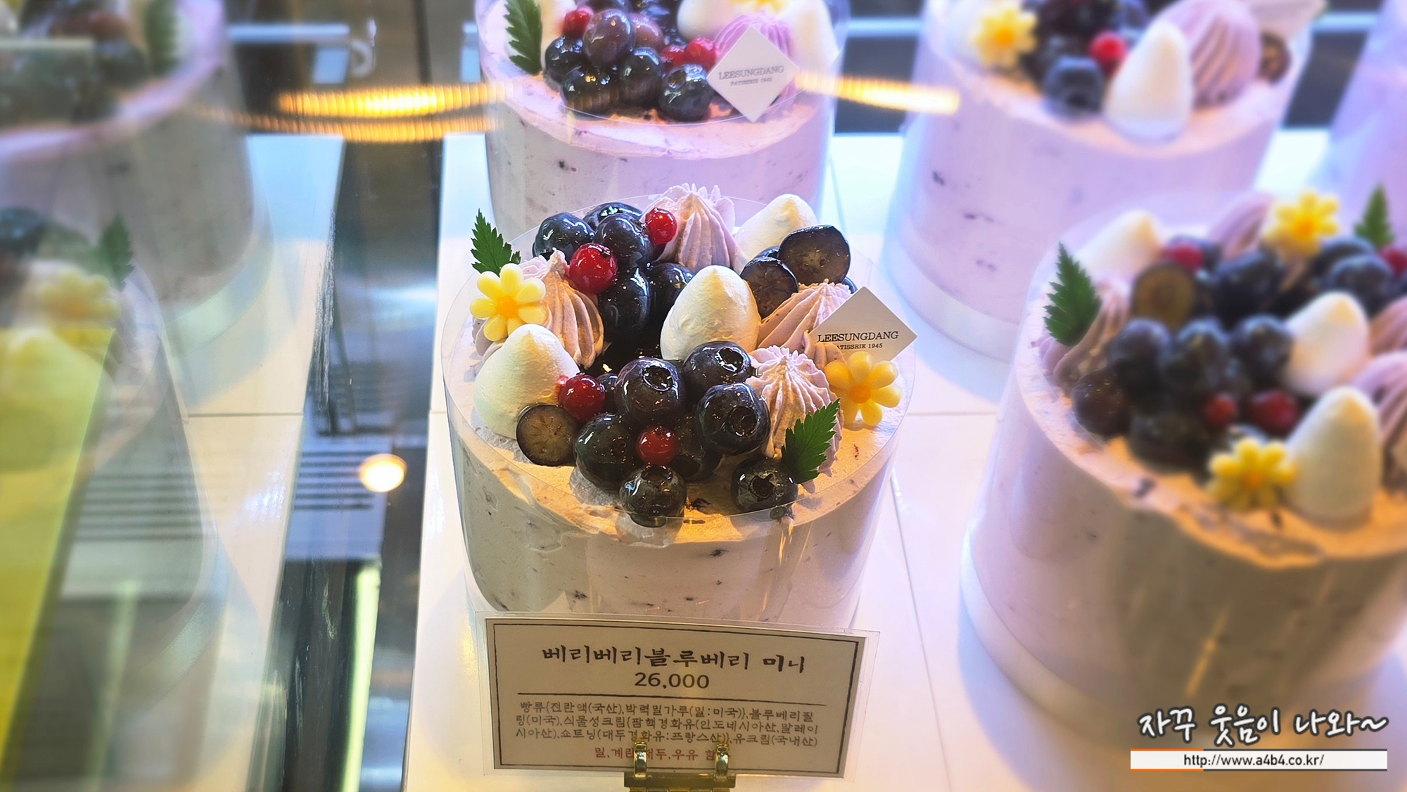 작은 이성당 미니케이크들이 준비되어 있습니다. 블루베리케이크, 딸기케이크, 망고케이크 들이 있는데요.