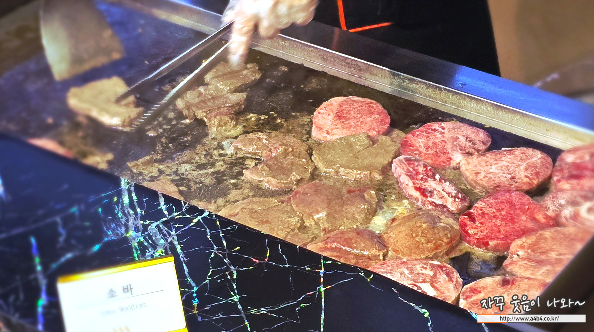 군산 한원컨벤션센터 뷔페 음식중에 가장 유명한 것이 이 스테이크라고 하고요. 가장 대기줄이 긴 곳이기도 합니다만, 맛은 그다지 좋다고 하기는 그렇네요. 그냥 냉동고기를 잘 구웠다기 보다는... 스테이크라고 하기도 그렇고...