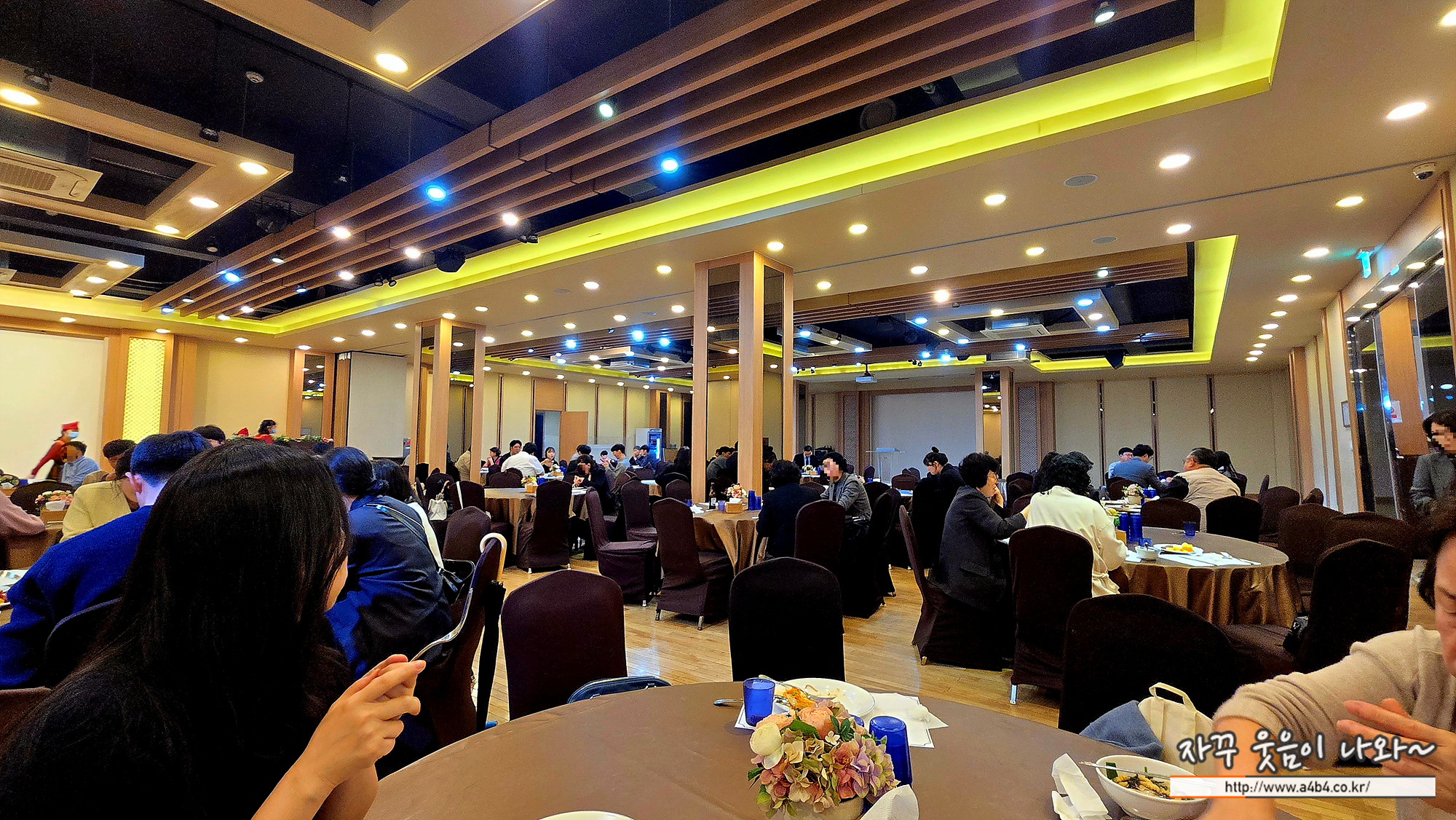 식사장소는 일반적인 웨딩홀 뷔페와 비슷한 원탁 테이블로 되어 있습니다.