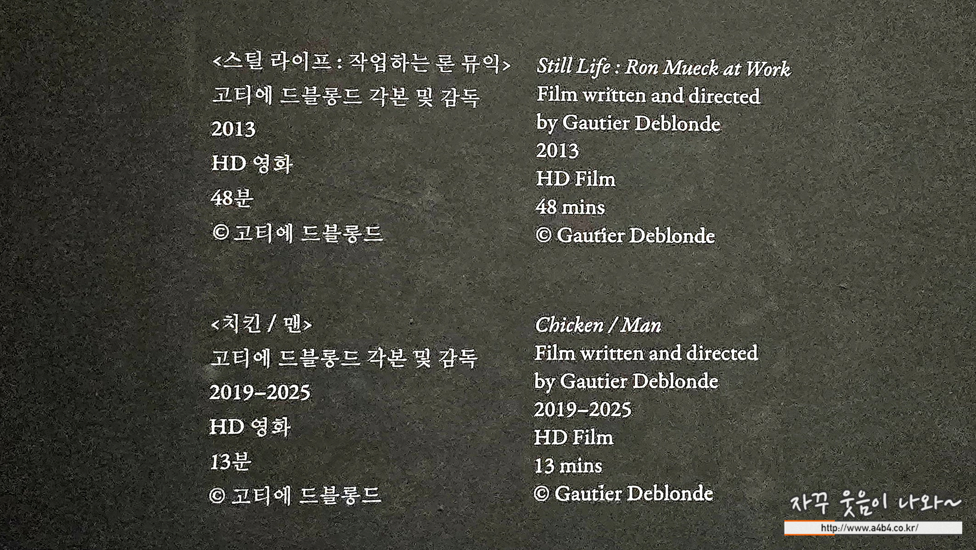두 영상의 상영시간이 각각 48분과 13분으로 영상감상에 소요되는 시간이 무려 한 시간입니다. 저는 시간안분을 잘 못해서 영상을 다 보지 못하고 나왔는데요.
