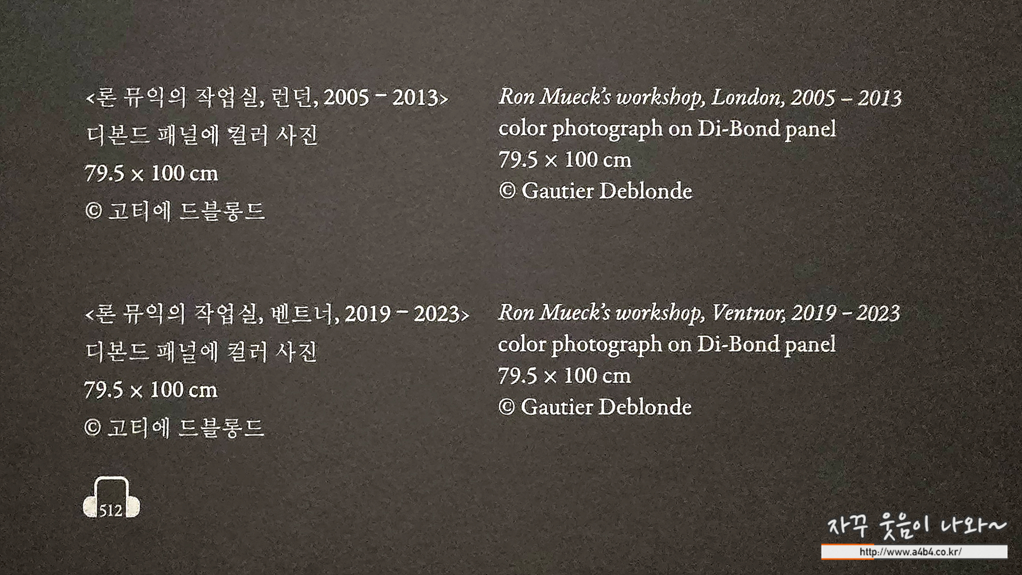 이곳에는 론뮤익의 작업실을 사진으로 담은 12장의 사진을 만나볼 수 있는데요. 작가의 작품활동을 엿볼 수 있는 흥미로운 공간입니다.