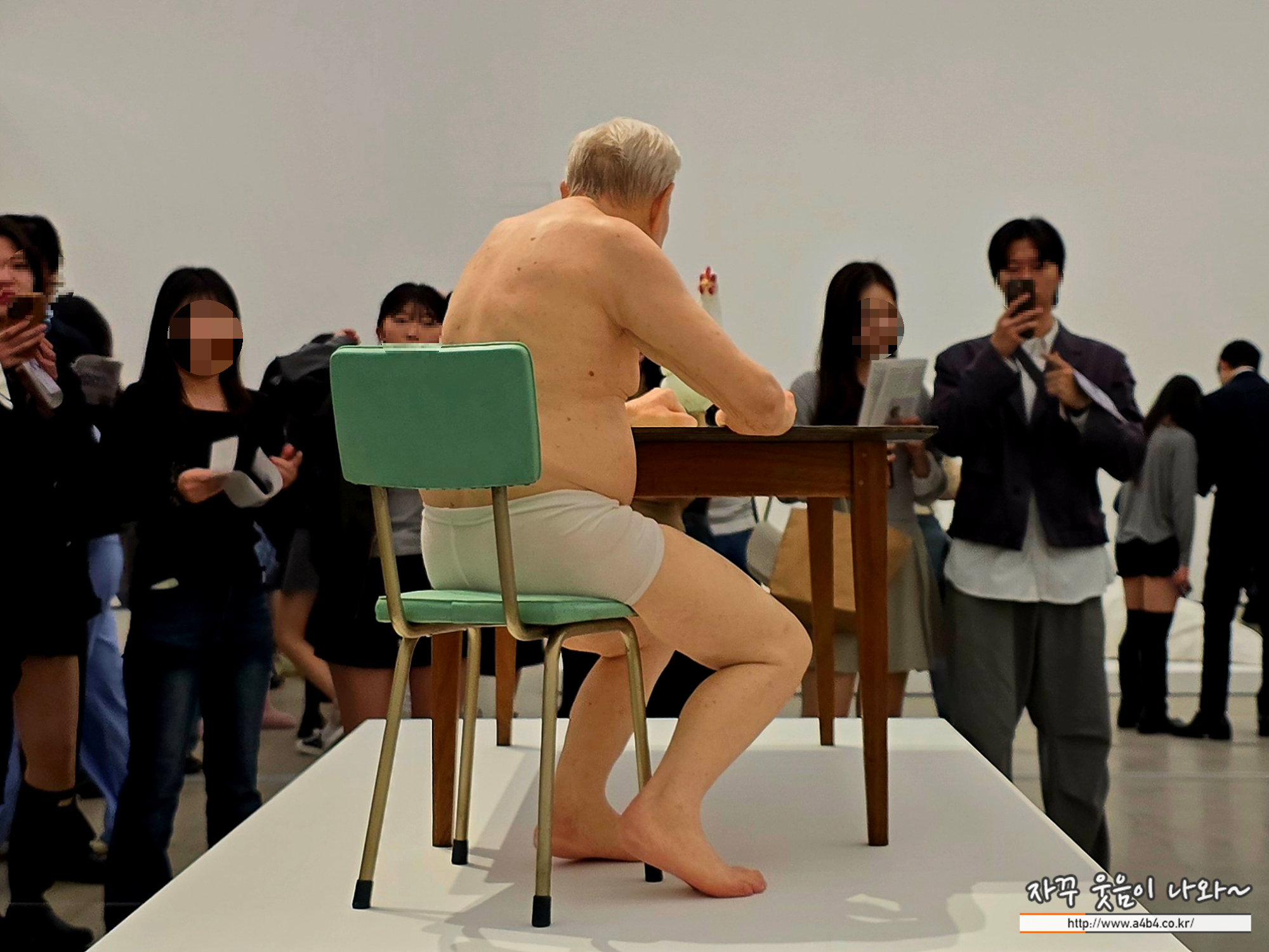 이렇게 이번 국립현대미술관 론뮤익 개인전은 실물크기 또는 과도하게 확대된 하이퍼리얼리즘 조각 작품들을 만나볼 수 있는데요. 지금부터는 다소 우울하고 어두운 느낌의 작품들을 만나보게 됩니다.