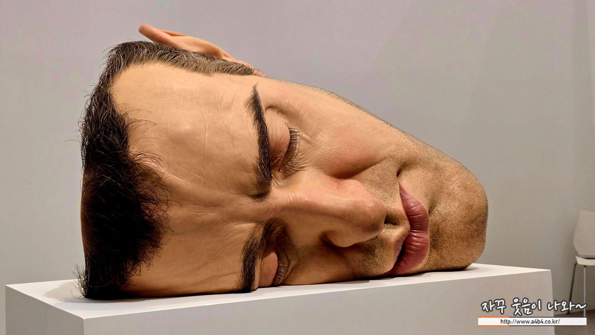 이렇게 이번 국립현대미술관 론뮤익 개인전은 실물크기 또는 과도하게 확대된 하이퍼리얼리즘 조각 작품들을 만나볼 수 있는데요. 지금부터는 다소 우울하고 어두운 느낌의 작품들을 만나보게 됩니다.