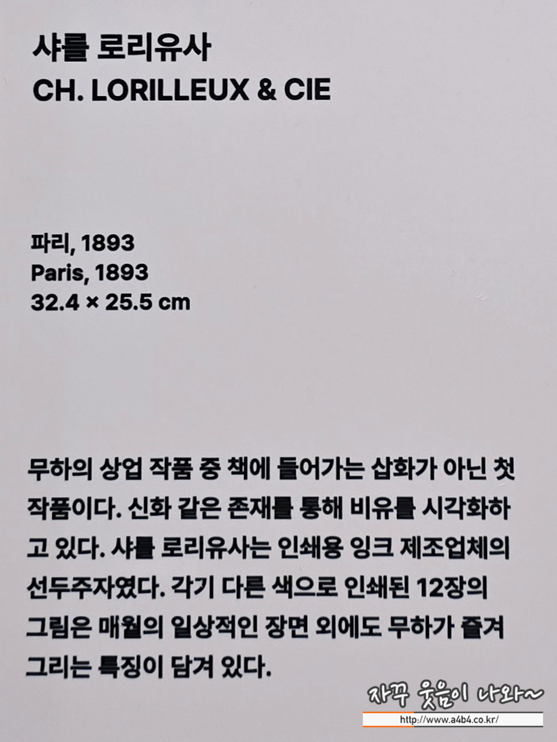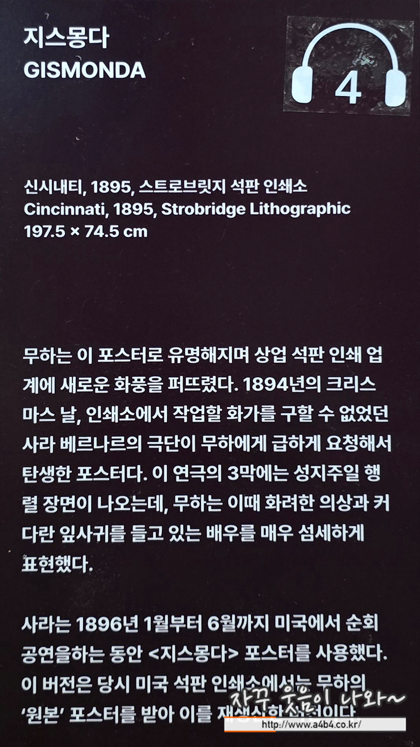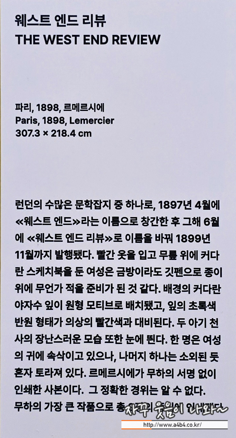 역시나 아르누보의 꽃 : 알폰스무하 원화전에서 이에 대한 설명이 전무한 부분은 상당히 아쉽네요. 좀더 감상하기 편하게 공간이 할애되었으면 얼마나 좋았을까...