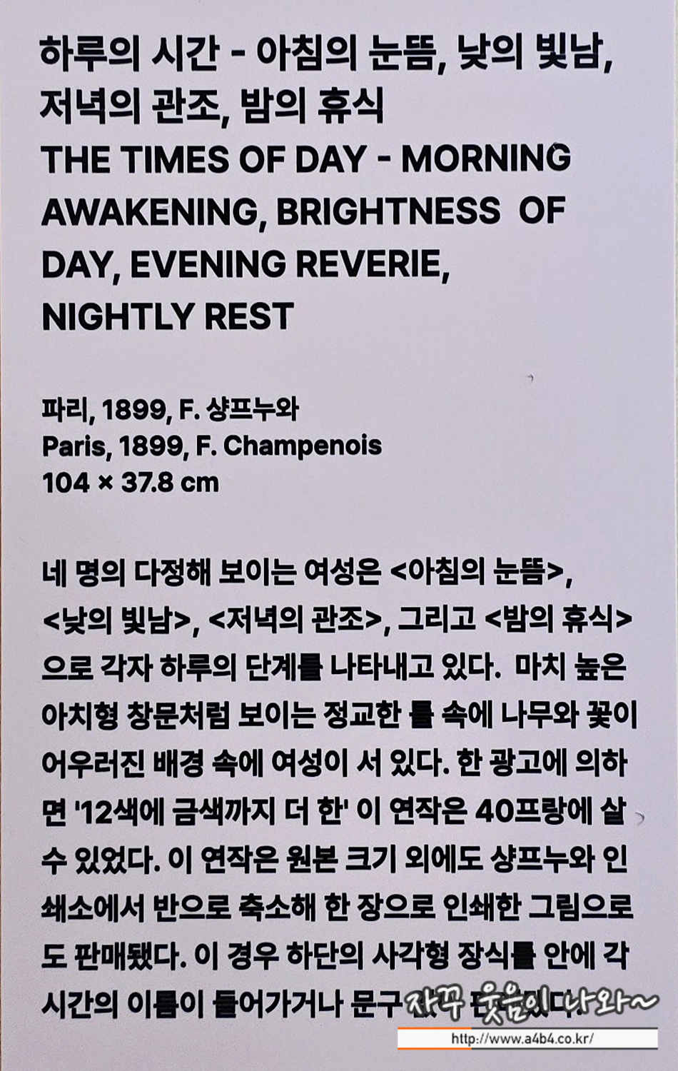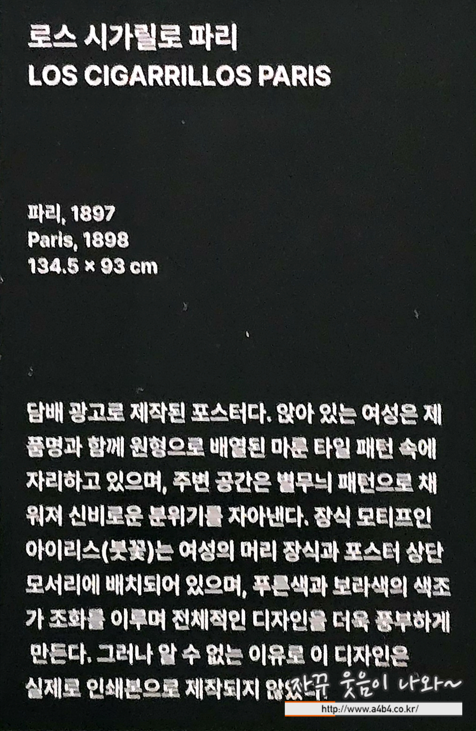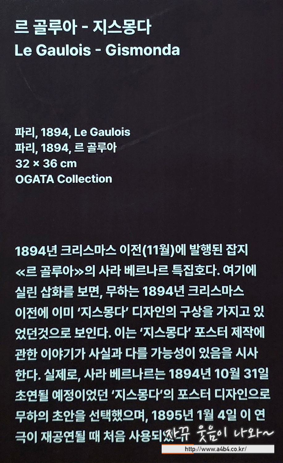 역시나 아르누보의 꽃 : 알폰스무하 원화전에서 이에 대한 설명이 전무한 부분은 상당히 아쉽네요. 좀더 감상하기 편하게 공간이 할애되었으면 얼마나 좋았을까...