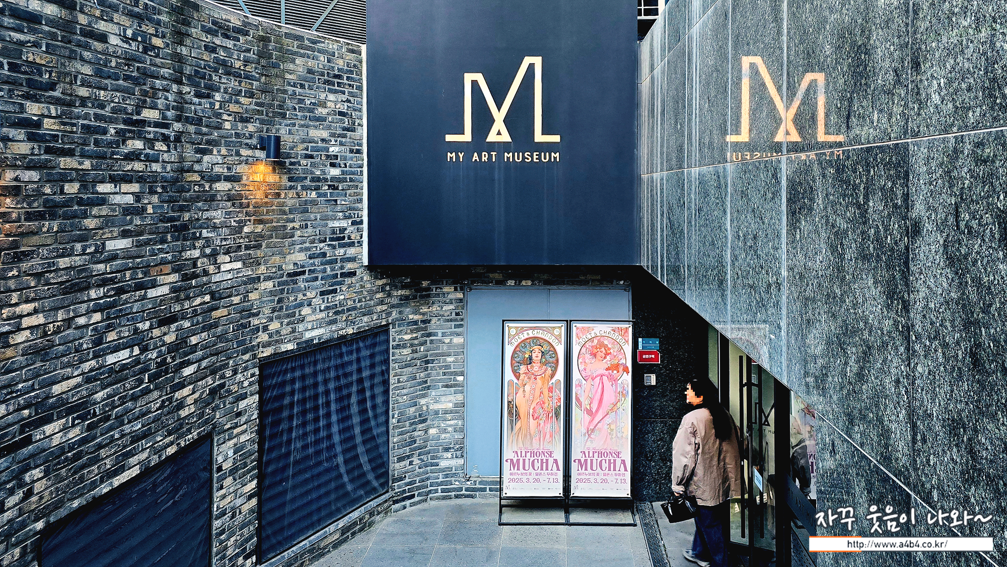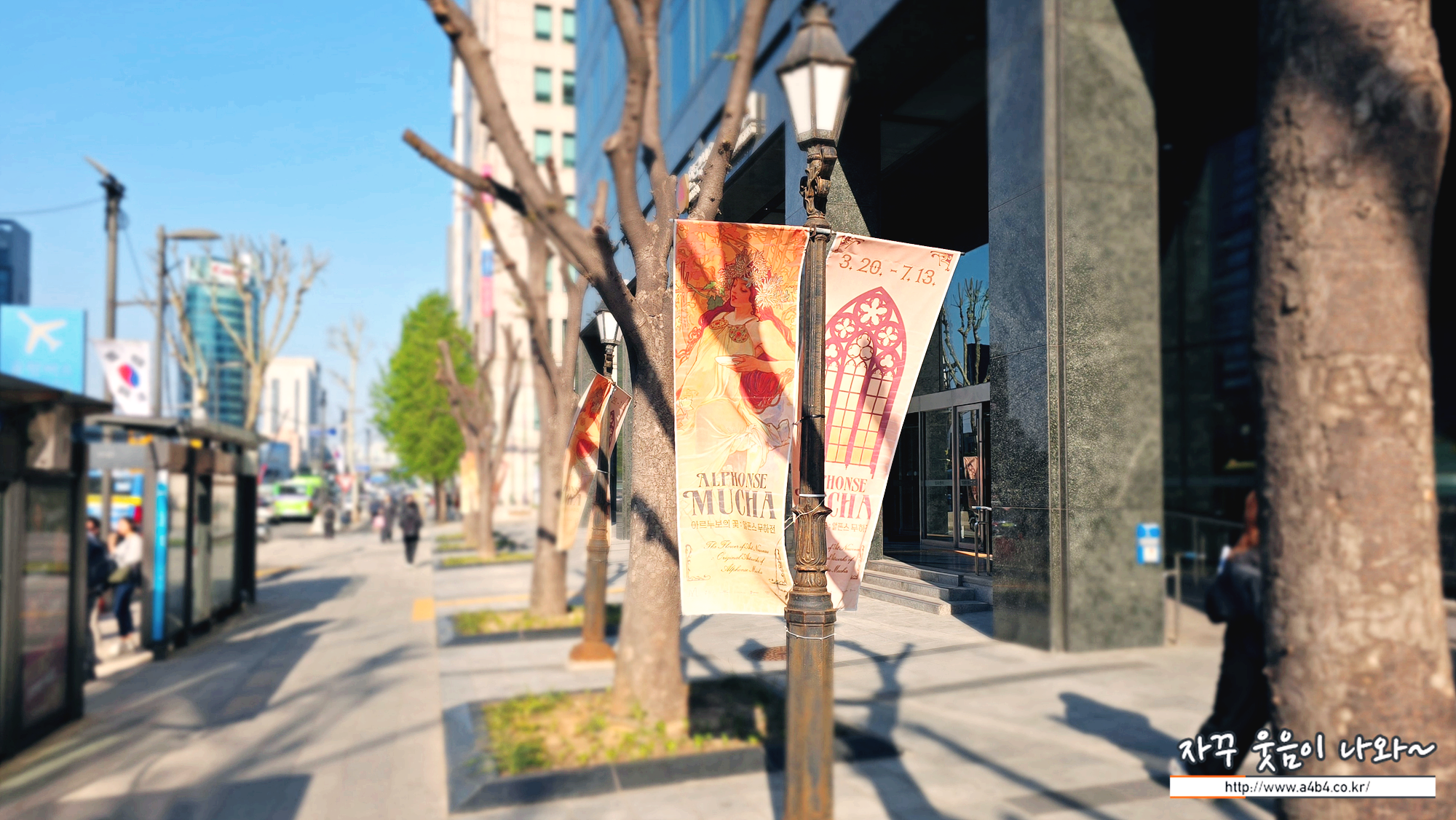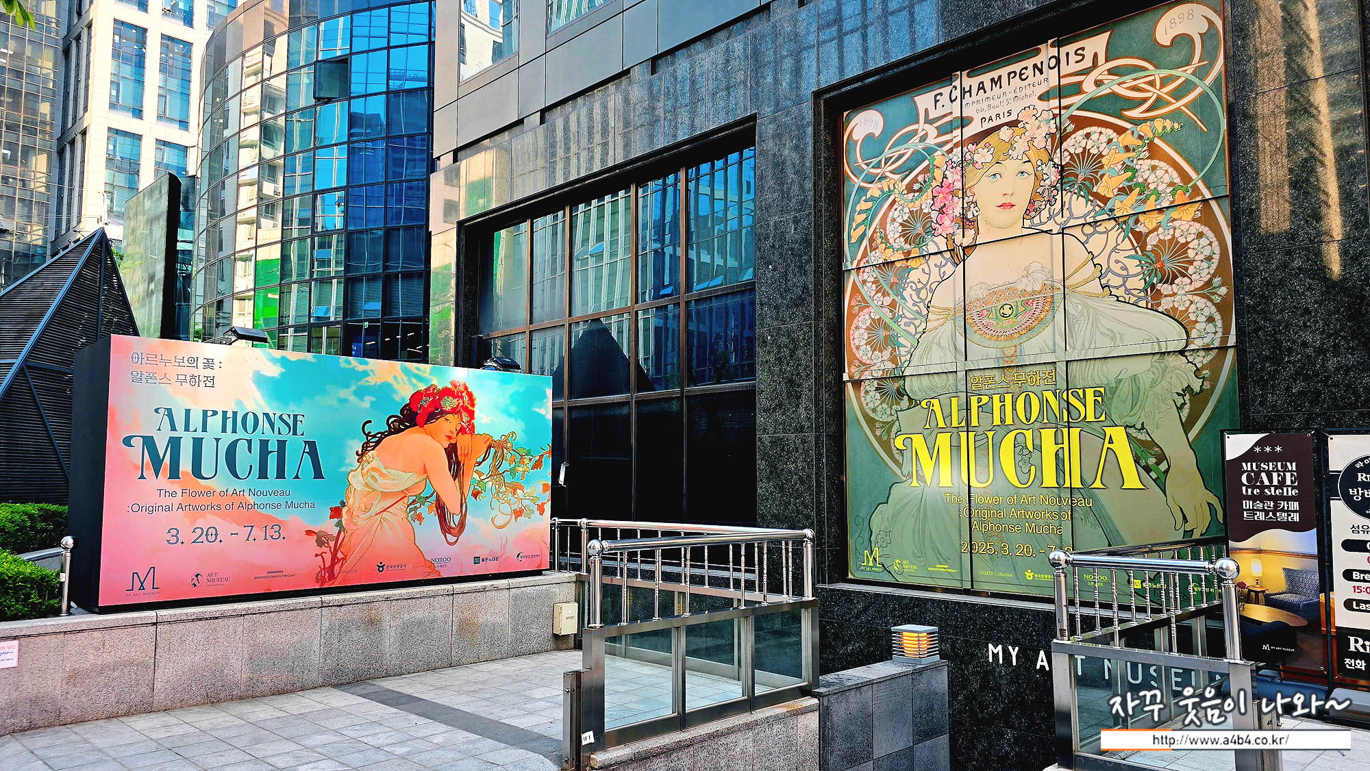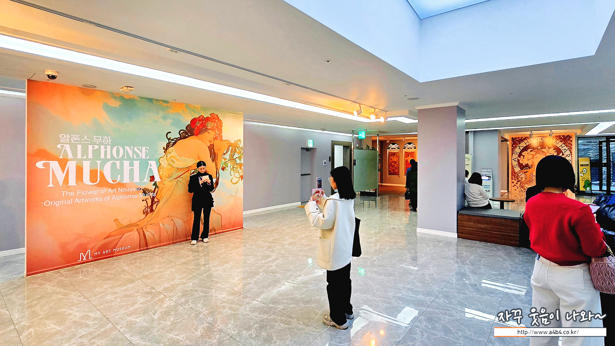 무하 전시회가 열리고 있는 삼성동 섬유센터 1층 주변에도 무하의 작품이 인쇄된 대형 현수막이 있어 이를 배경으로 사진찍기 좋고요.