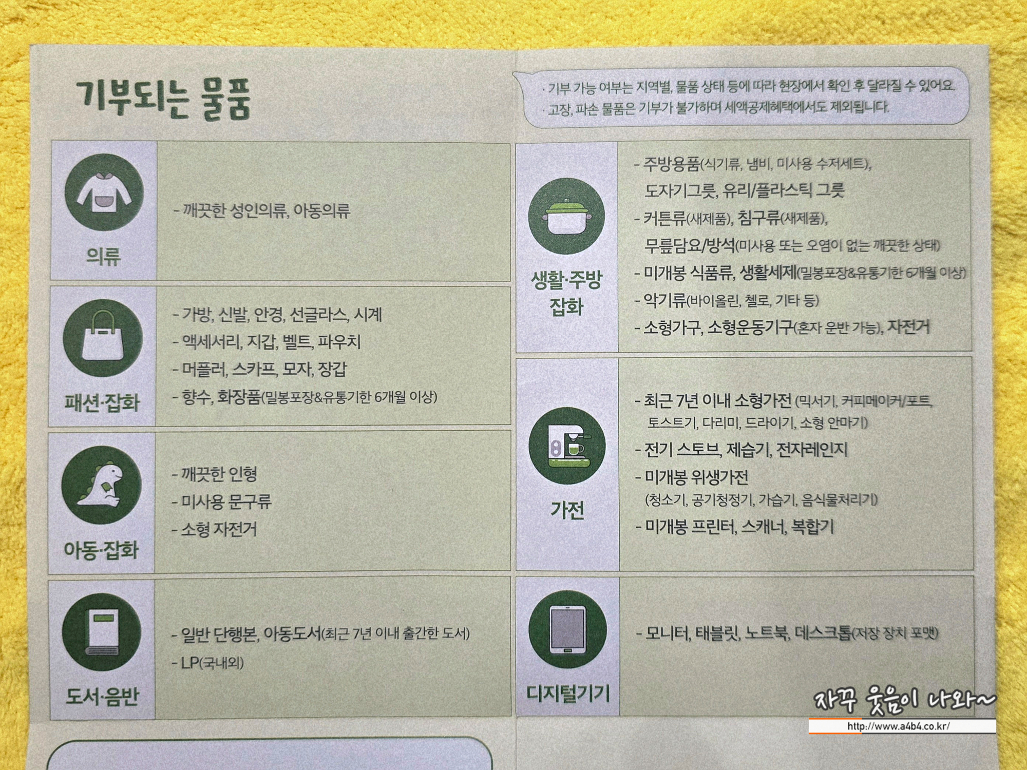 저는 의류정도만 가능하다고 생각했는데, 아름다운가게 기부가능 품목은 아래와 같이 다양합니다.