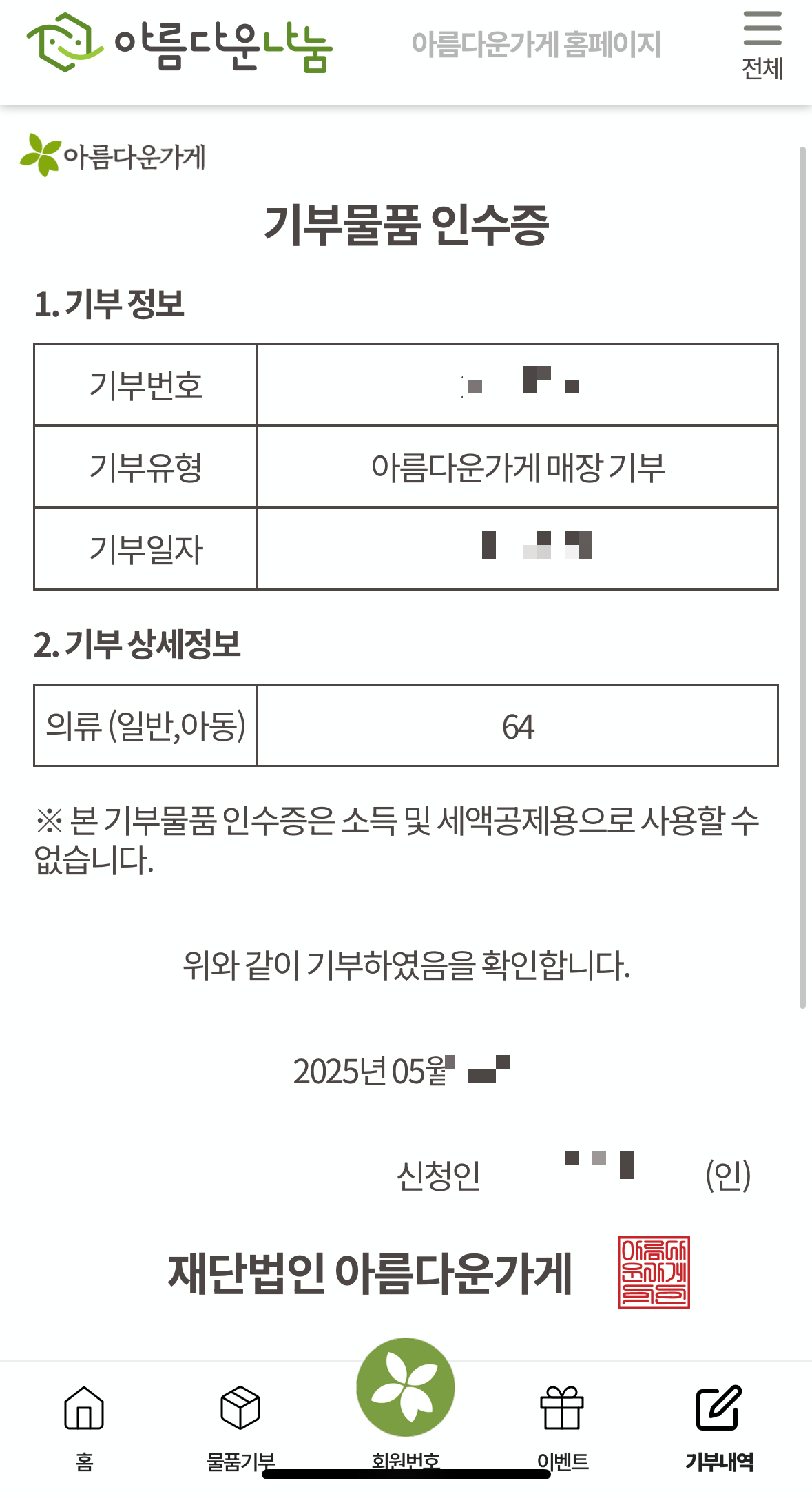 이번에도 겨울옷 정리하면서 불필요해진 64점의 옷을 아름다운가게 매장기부하고 왔네요.