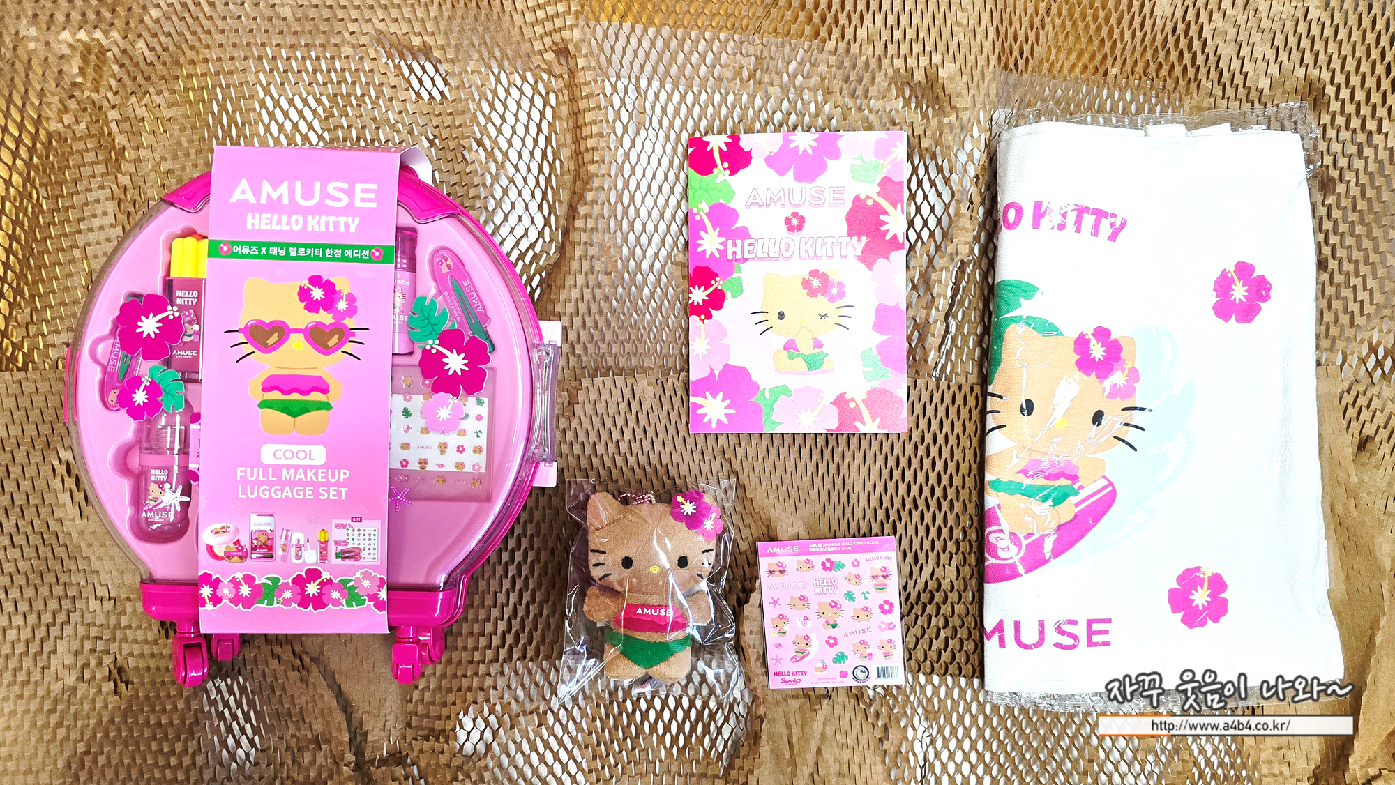 5월 1일 어뮤즈몰에서 선착순 한정판매한 '태닝 헬로키티 한정 에디션 : 풀 메이크업 라지 캐리어 세트' 개봉후기
