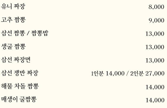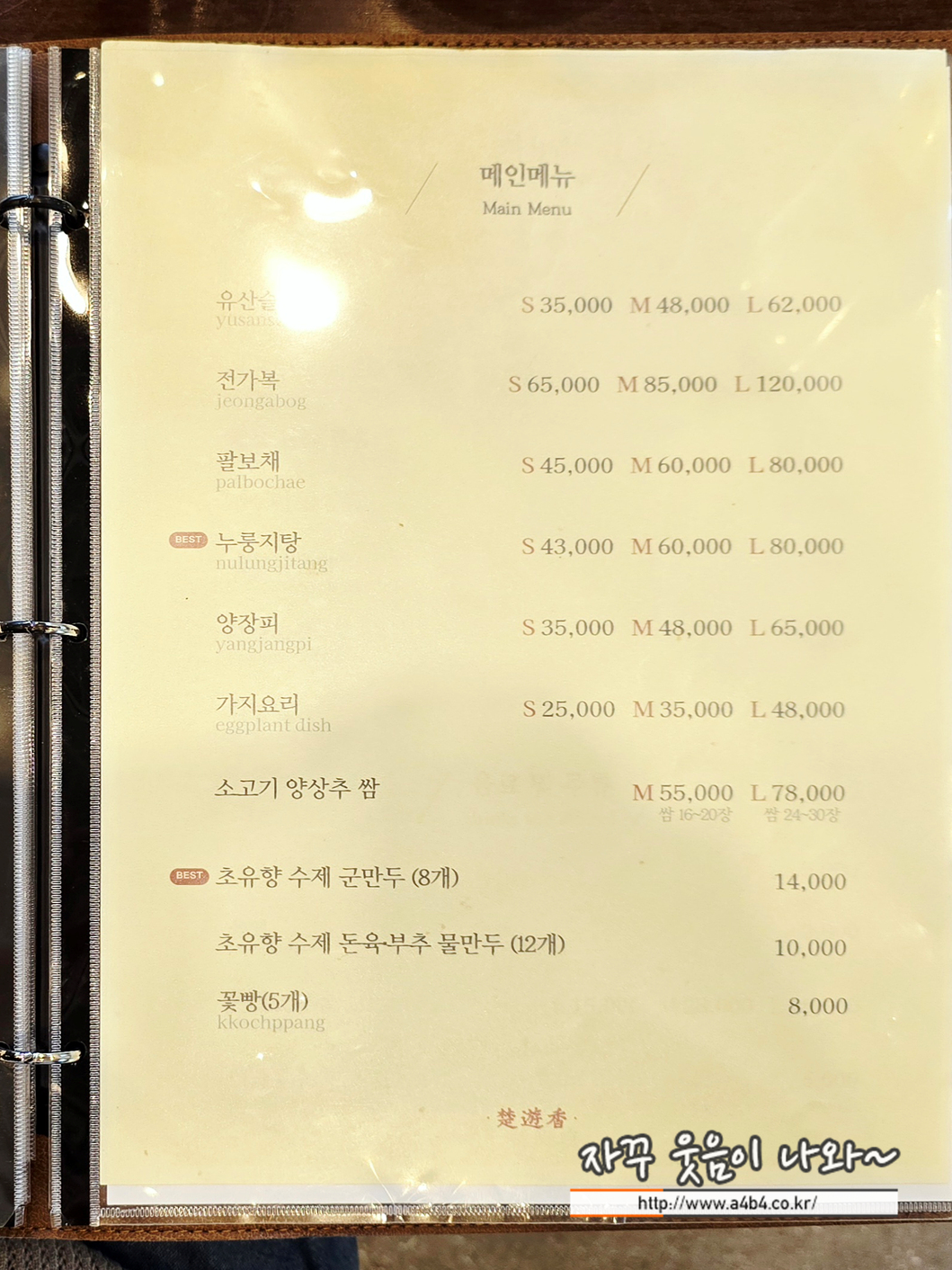 | 초유향 메뉴 및 가격