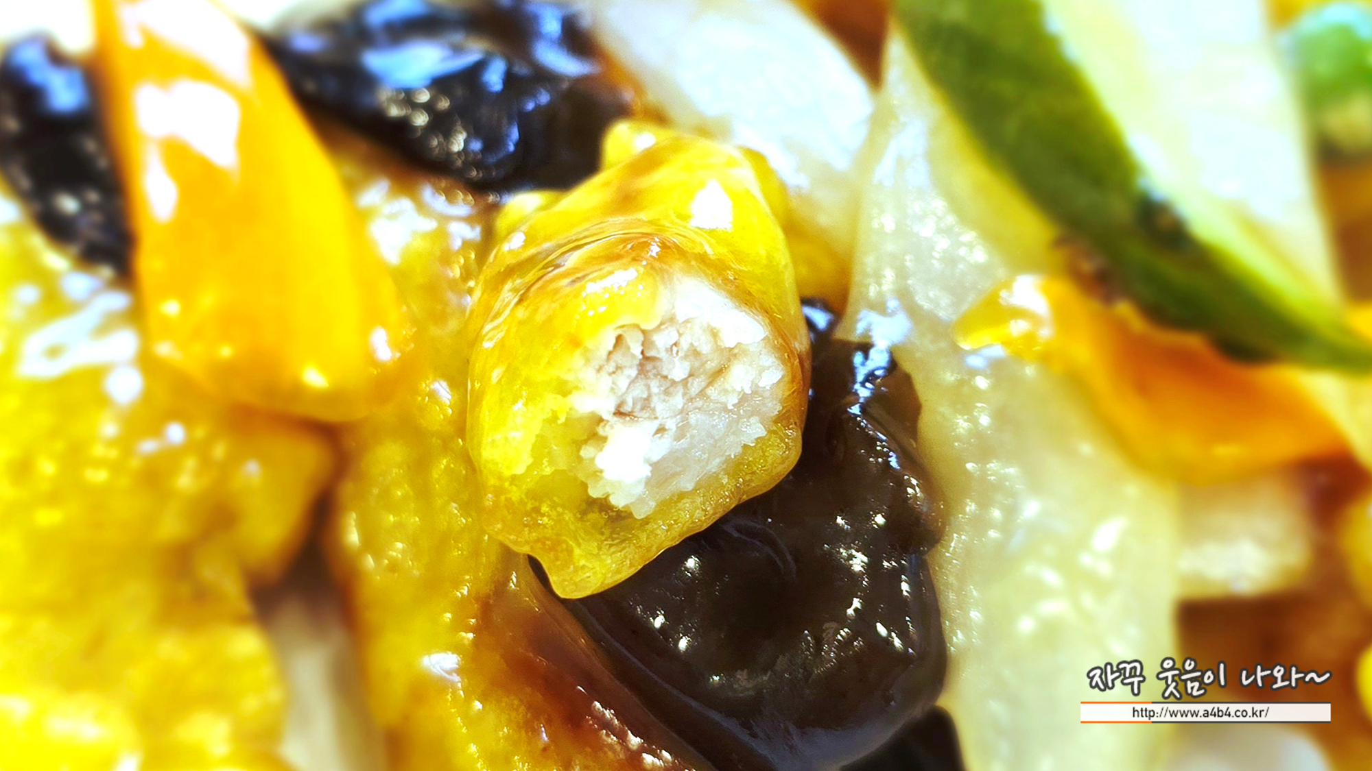 새콤달콤한 탕수육 소스와 목이버섯, 당근, 오이등의 야채, 그리고 바삭한 탕수육은 좋은 점수 주고 싶네요.