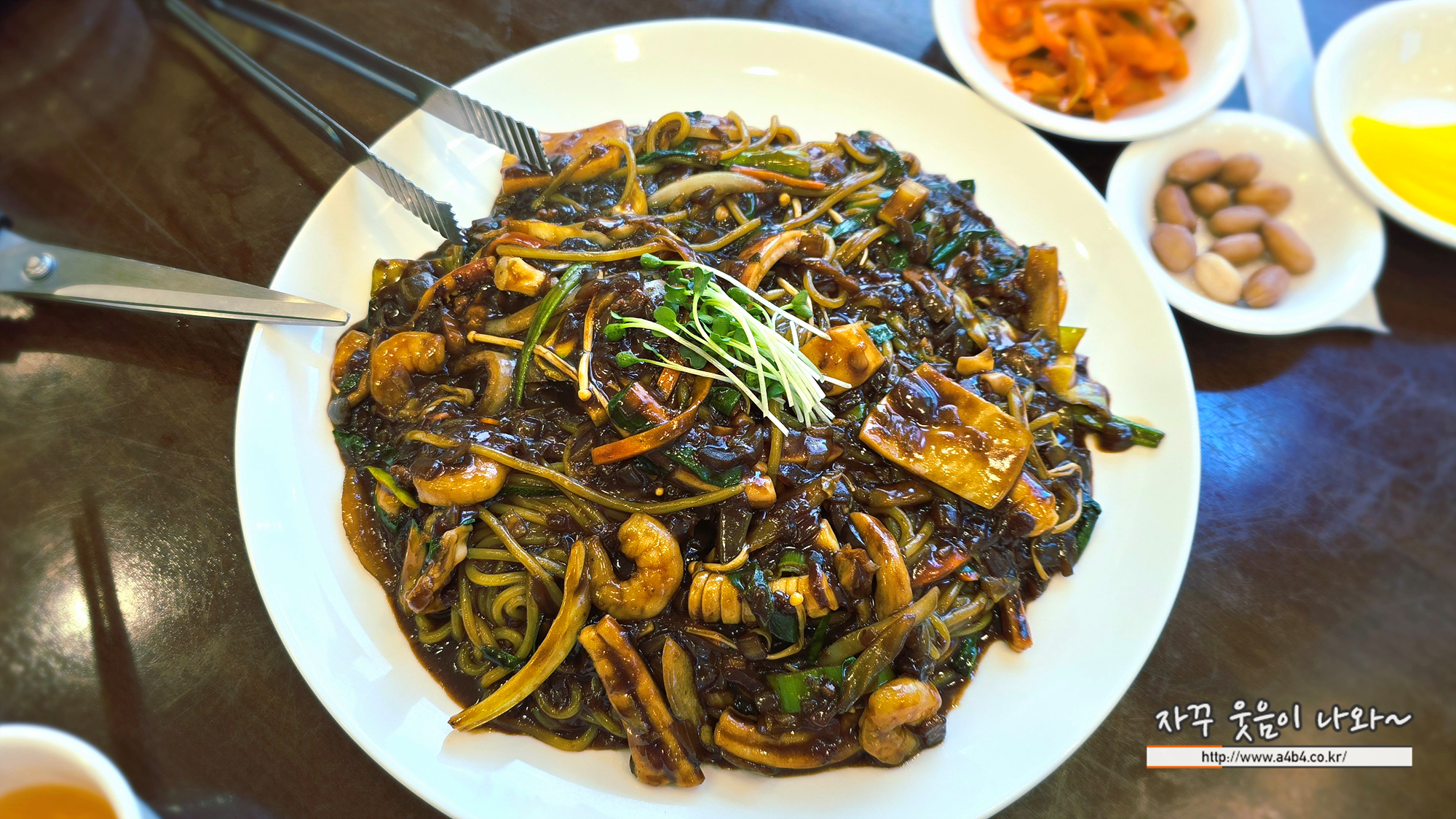 초유향 쟁반짜장은 새우와 오징어 등 해산물이 푸짐하게 들어간 짜장면인데요.