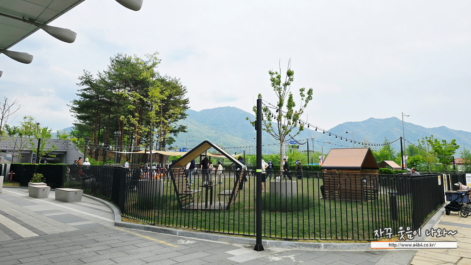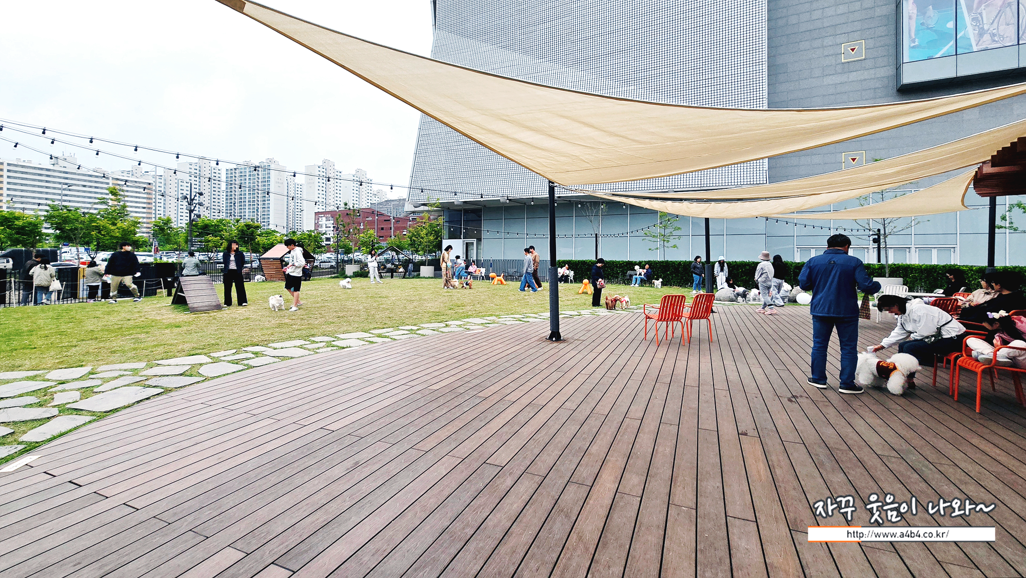 오픈 스페이스와 분수대, 벤치 파고라, 미니 어질리티 등의 시설을 갖추고 있고요. 무었보다도 기존의 스타필드 펫파크에 비해서 견주들이 휴식할 수있는 공간이 많이 생겼습니다. 이 부분은 상당히 매력적인 부분