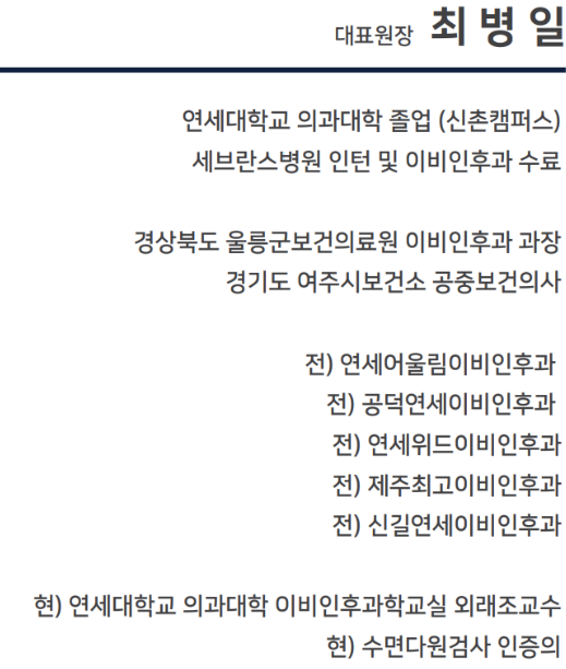 대표원장 최병일 연대 의과대학 졸업하셨네요.