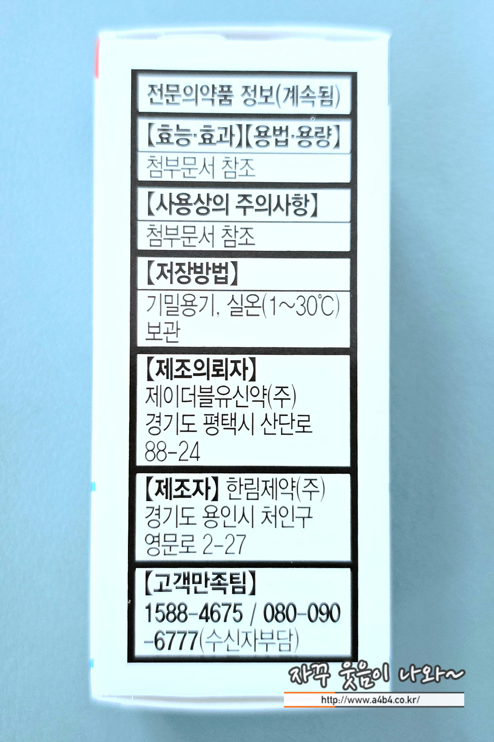 유통은 제이더블유신약(주), 제조는 한림제약에서 진행하며 2002년 5월 허가된 약품입니다. 약품 첨가제는 첨가제 : 주사용수,염산,수산화나트륨,염화나트륨,벤잘코늄염화물