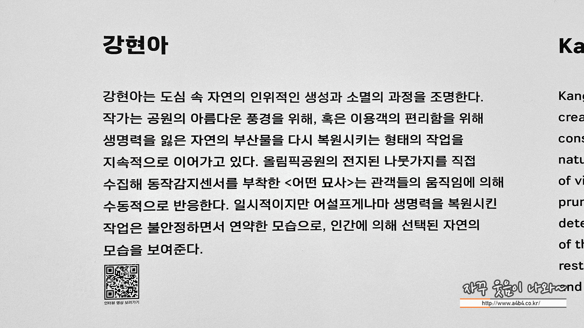조금 더 자세한 설명들이 있었다면 좋았을 것 같네요. 각각의 작가 인터뷰 유튜브 영상 보다는 오디오 가이드가 제공 되었어면 어땠을지...