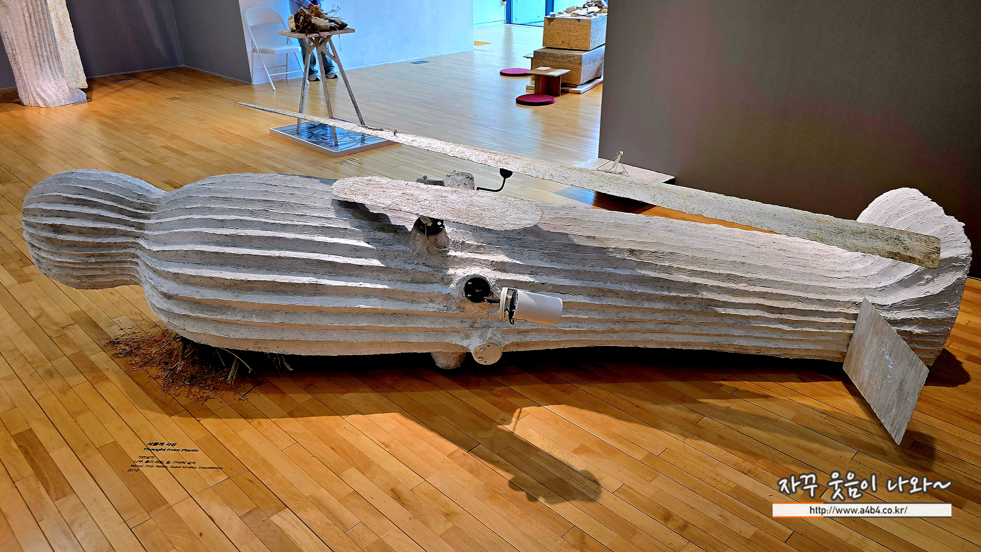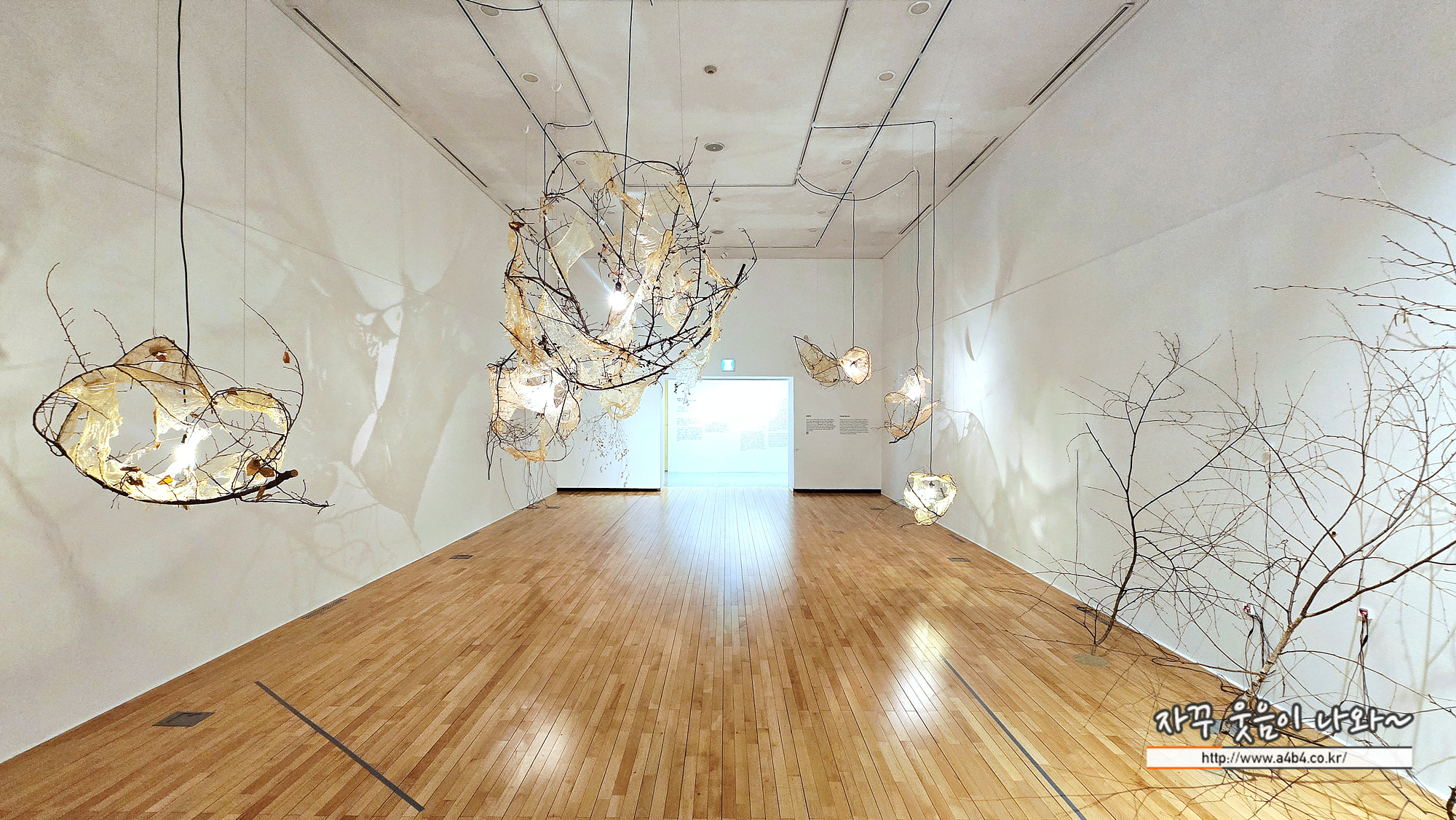 올림픽 공원에서 수집한 죽은 나뭇가지를 미술관으로 가지고 와서 관객기 다가왔을 때 새로운 움직임을 줌으로써 새로운 생명력을 얻어내는 작업이라고 할 수 있습니다.