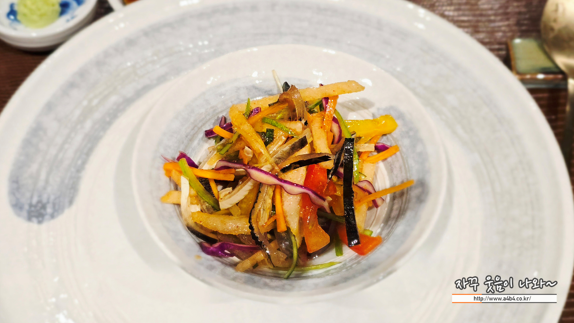 무침은 달콤 새콤하고 복어껍질의 특유한 식감을 느낄 수 있습니다. 메인 식사 전에 입맛을 올리기에 참 좋은...