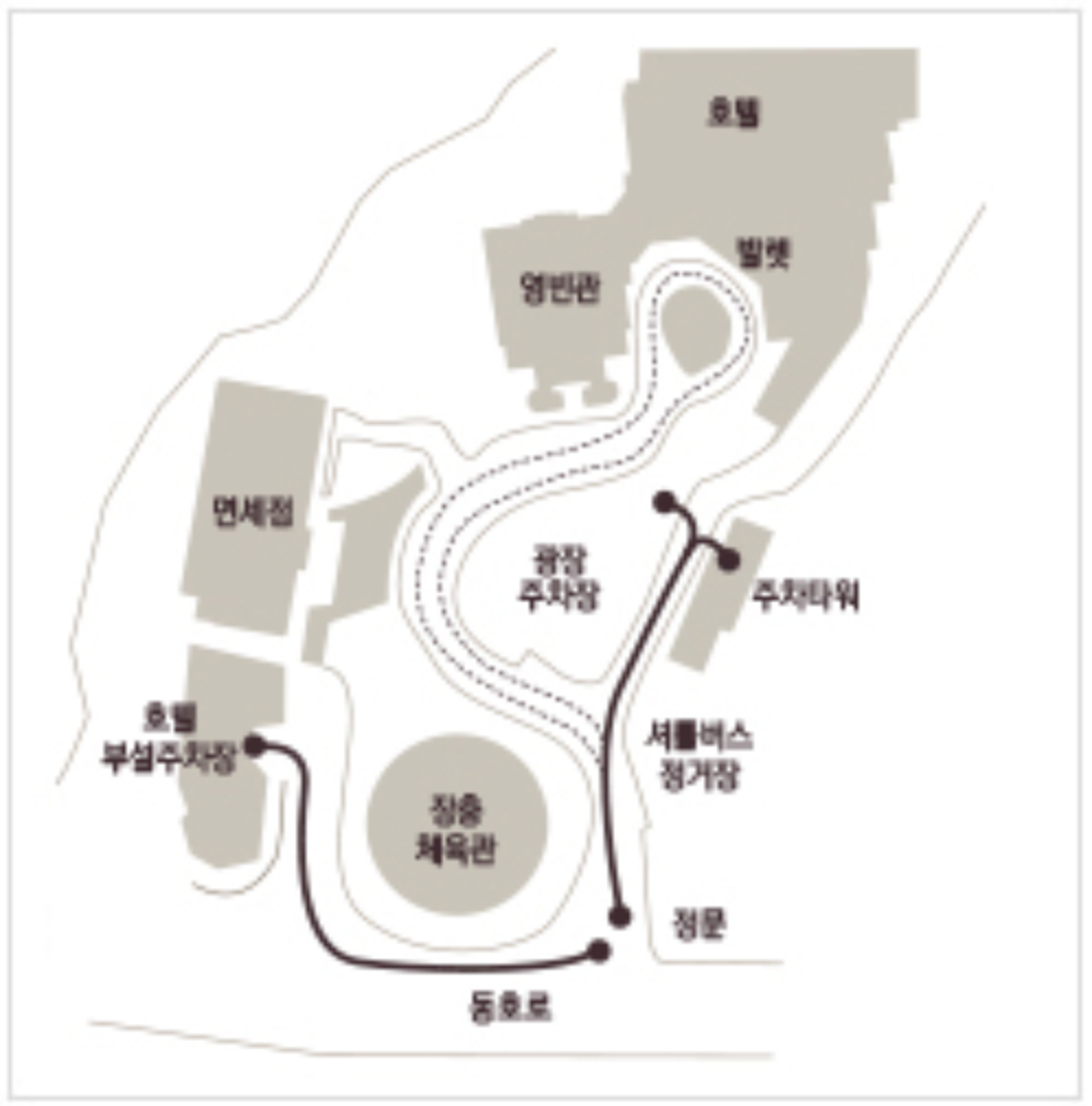 | 발렛 파킹은 '호텔, 면세점 방향'