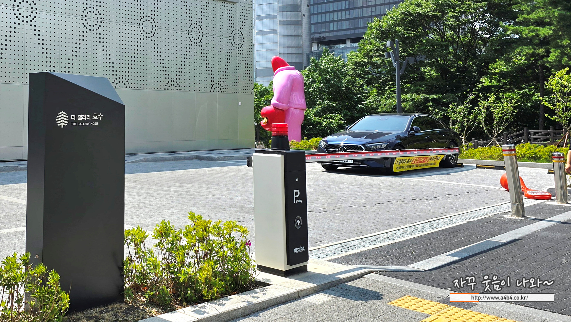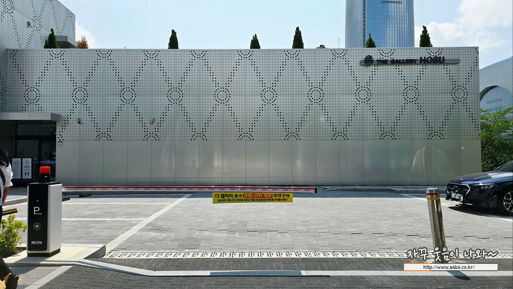 아래 차단바에 안내된 것과 같이 이곳 업무용 차량만 이용할 수 있습니다. 즉 일반 관람객을 위한 더 갤러리 호수 주차장은 없습니다.