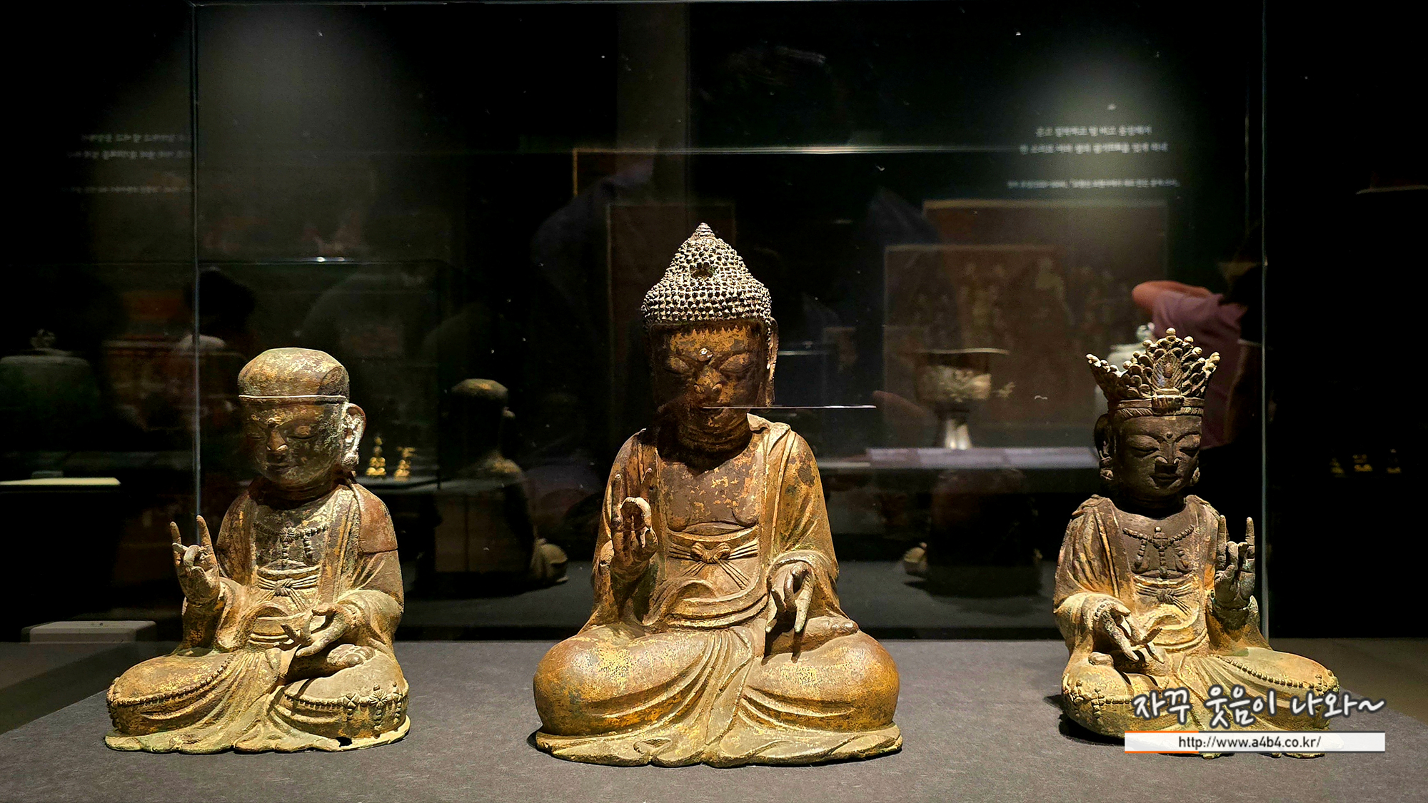 새 나라 새 미술: 조선 전기 미술 대전 조선초기 불상들이 소개됩니다. 첫 섹션에서는 금동 불상 중심으로 전시되어 있습니다.