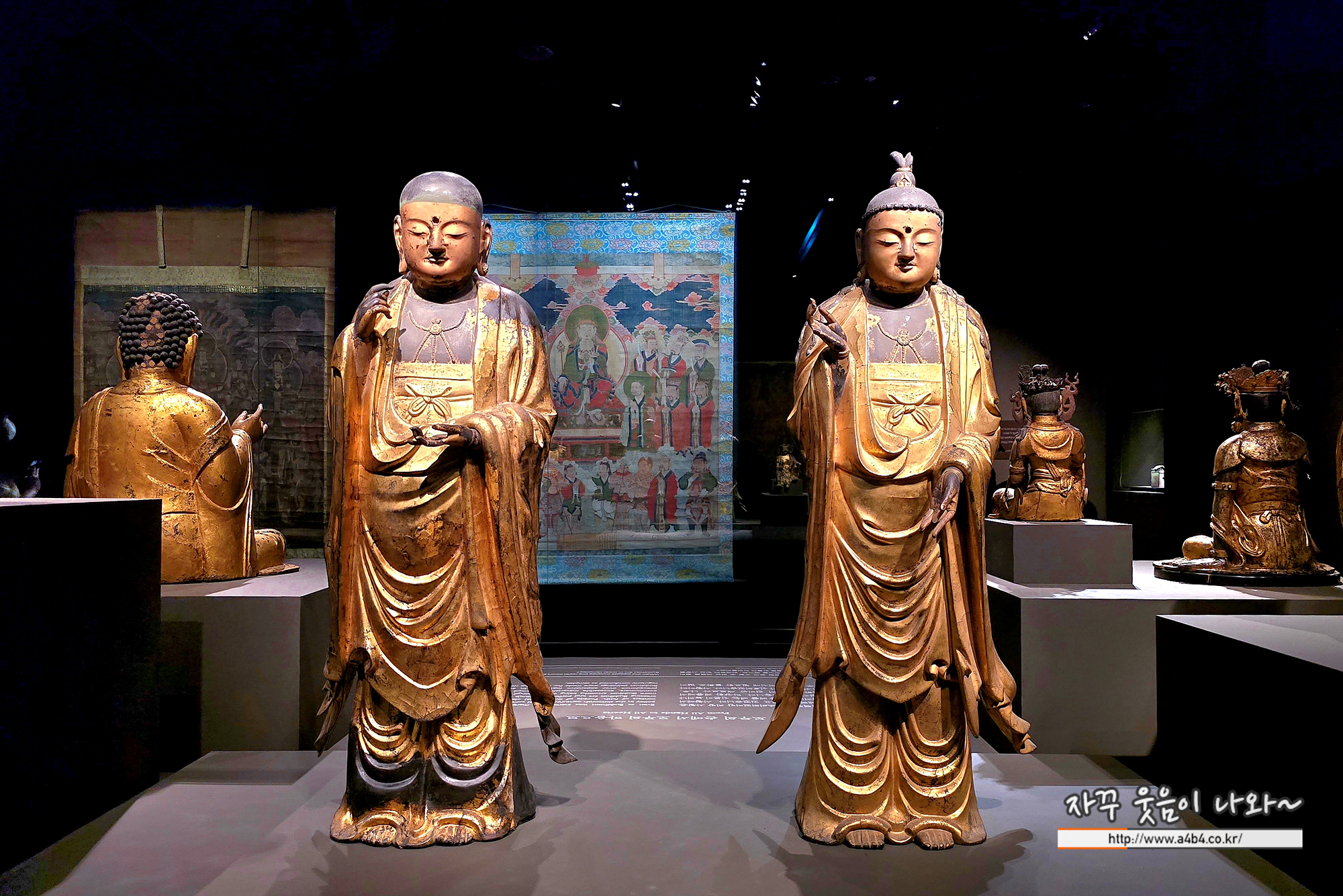 새 나라 새 미술: 조선 전기 미술 대전 조선초기 불상들이 소개됩니다. 첫 섹션에서는 금동 불상 중심으로 전시되어 있습니다.