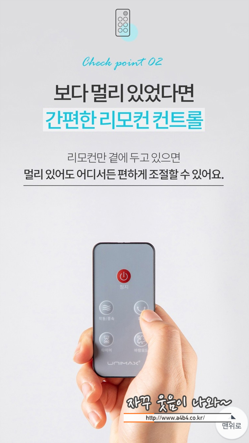 온오프는 유용하게 사용하지만, 앞에 발터치와 같은 불편함이 유니맥스 발터치 선풍기 리모컨에서도 나오네요.