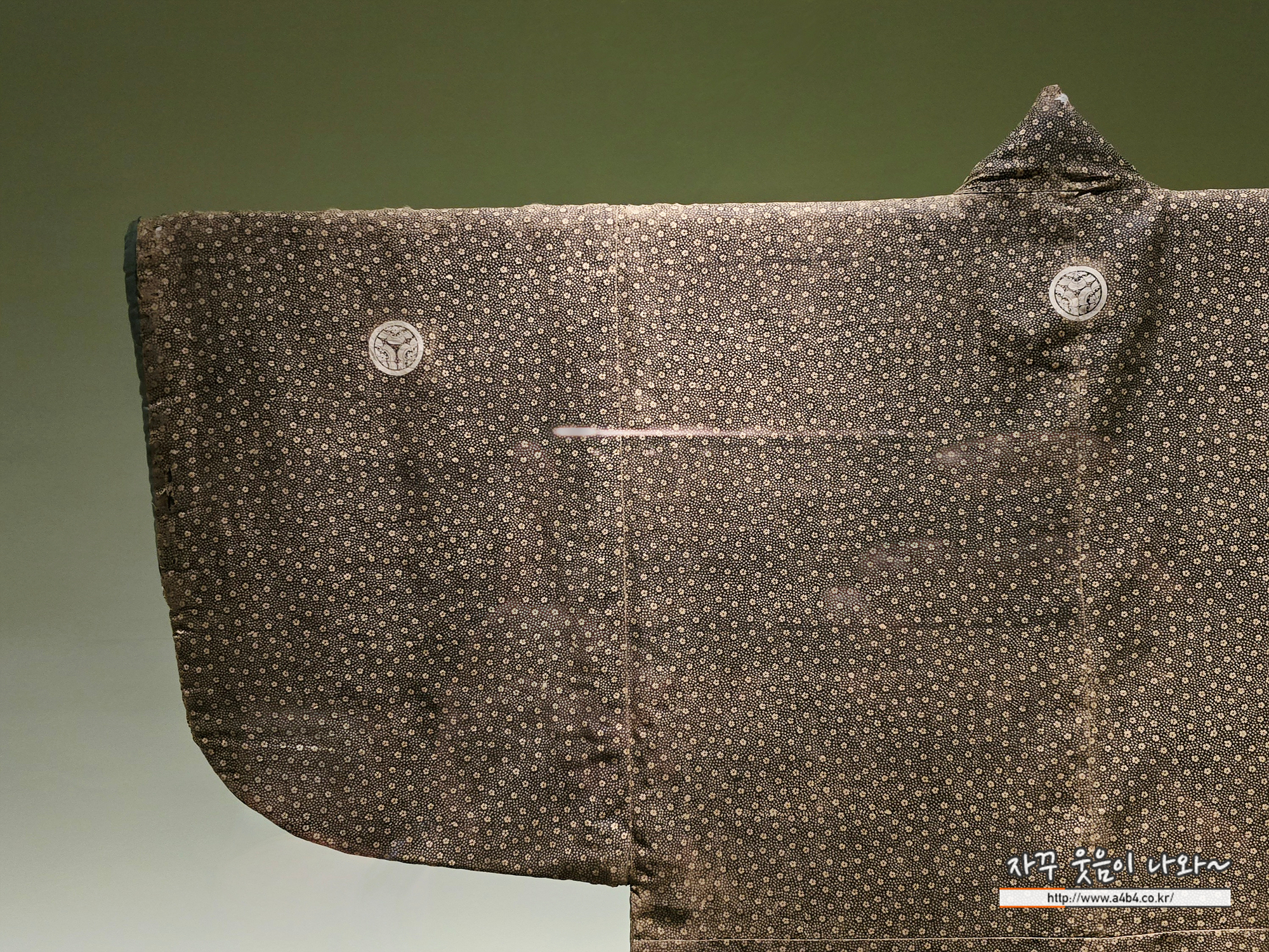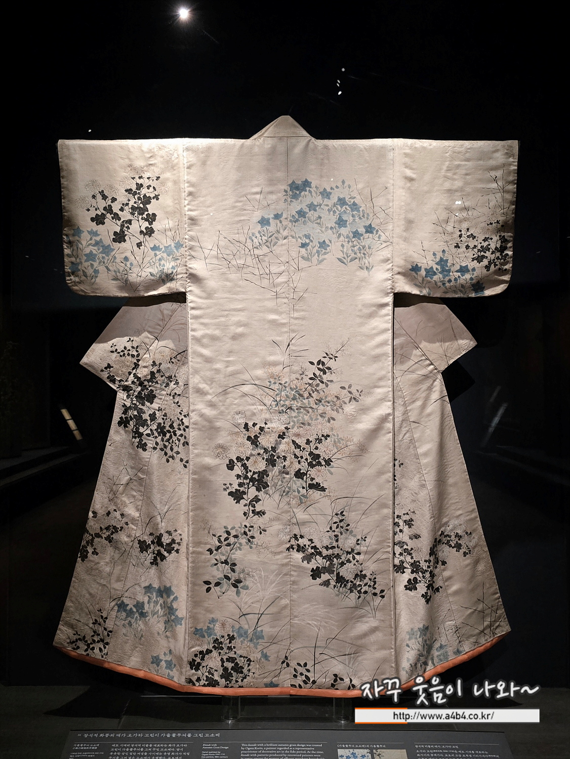 에도 시대(江戸時代, 1603-1868) 전기부터 중기까지 활약한 화가 오가타 고린(尾形光琳, 1658-1716)께서 직접 무늬를 그린 것으로 알려진 고소데(小袖)입니다. 이 옷과 함께 전해 오는 두루마리 그림을 통해 오가타 고린의 작품임을 확인할 수 있습니다.