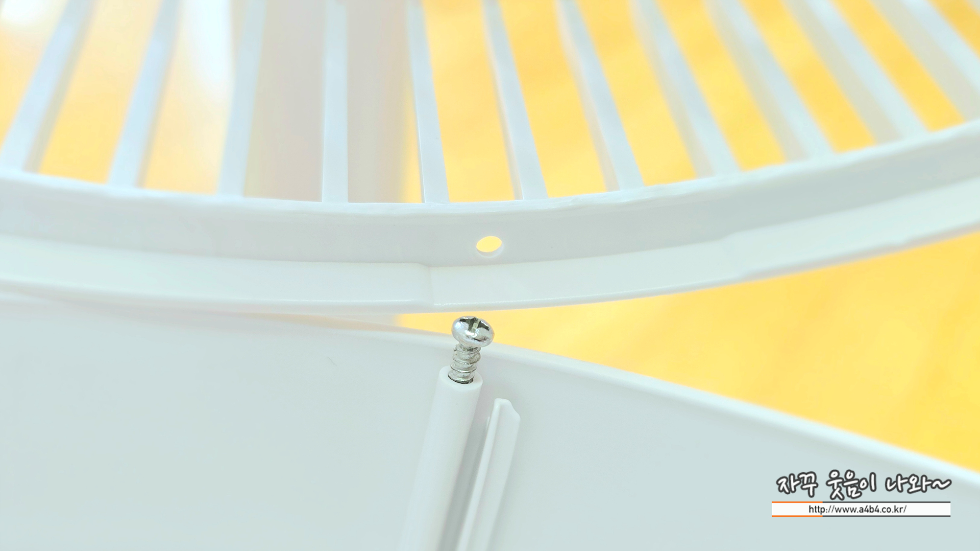 보호망 결합이 끝나면 상단과 하단 두곳에 홈을 통해 나사로 고정해야 합니다. 보국전자 선풍기 조립 위해서는 십자 드라이버 필요한 부분입니다.