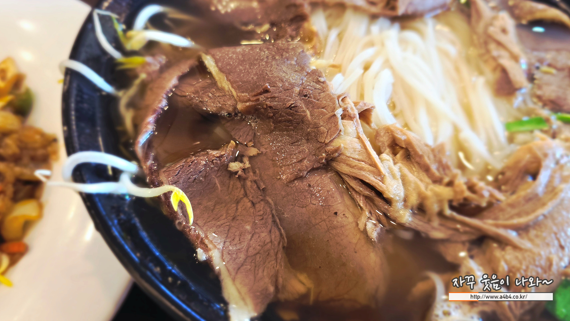 얇게 썬 양지고기가 정말로 푸짐하게 들어 있고요. 쌀국수와 숙주나물도 가득 들어 있습니다.