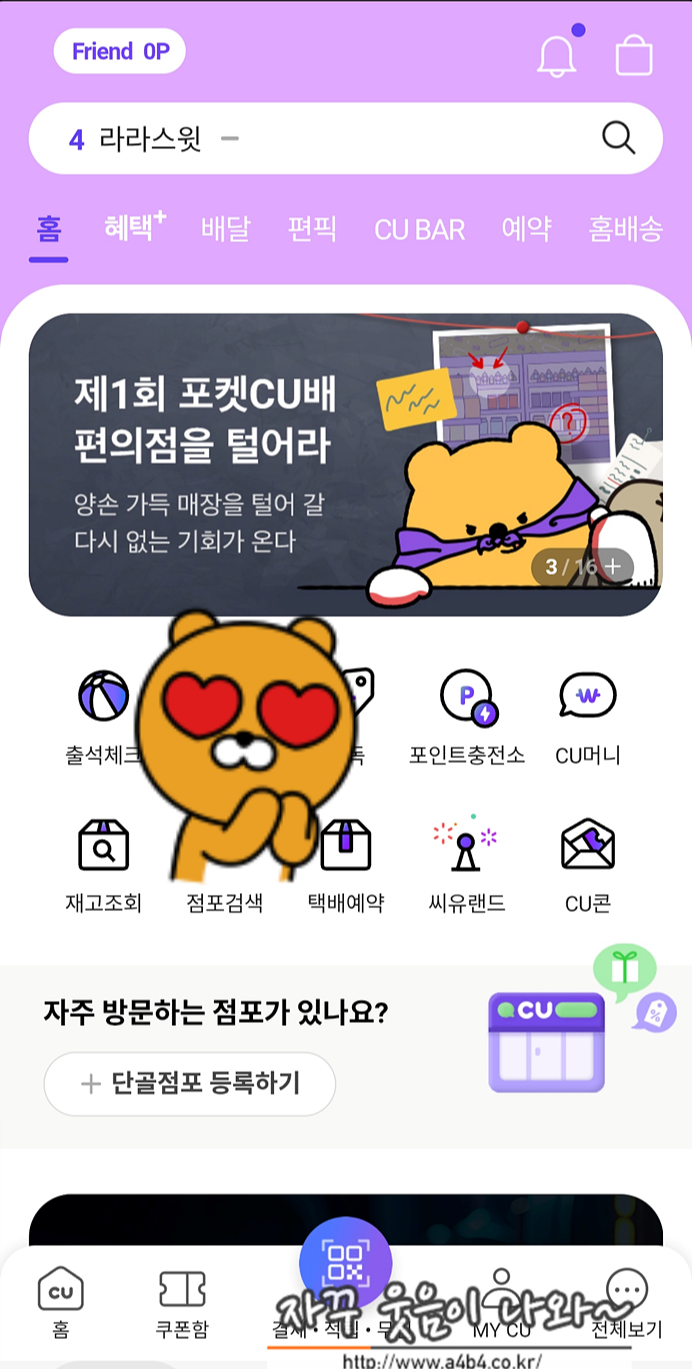 가나디 바나나우유 입고상황은 CU앱 재고조회 메뉴에서 확인해야 합니다.