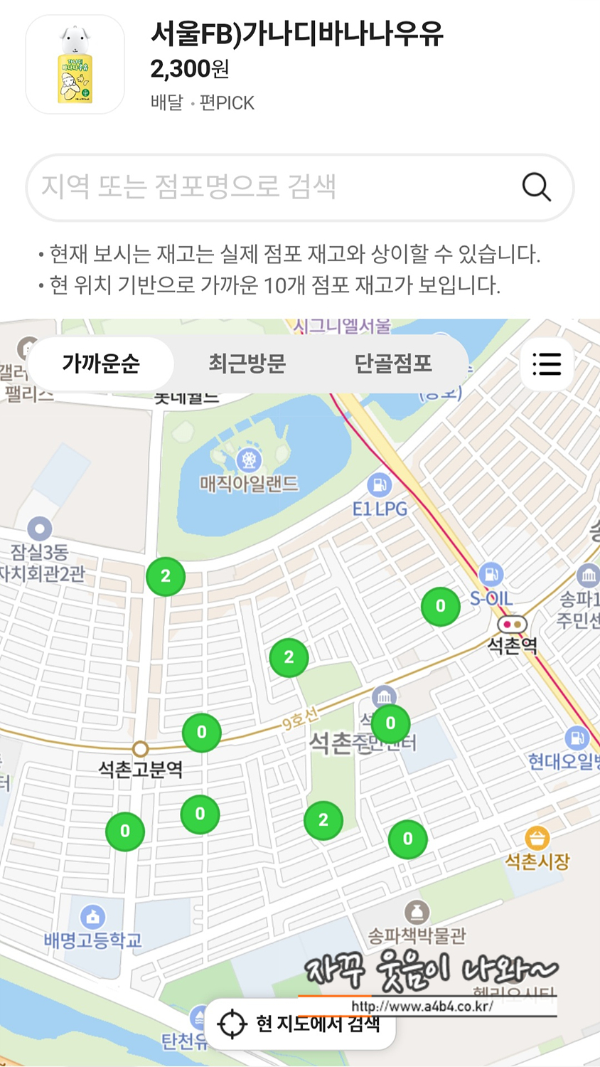 가나디 바나나우유 입고상황은 CU앱 재고조회 메뉴에서 확인해야 합니다.