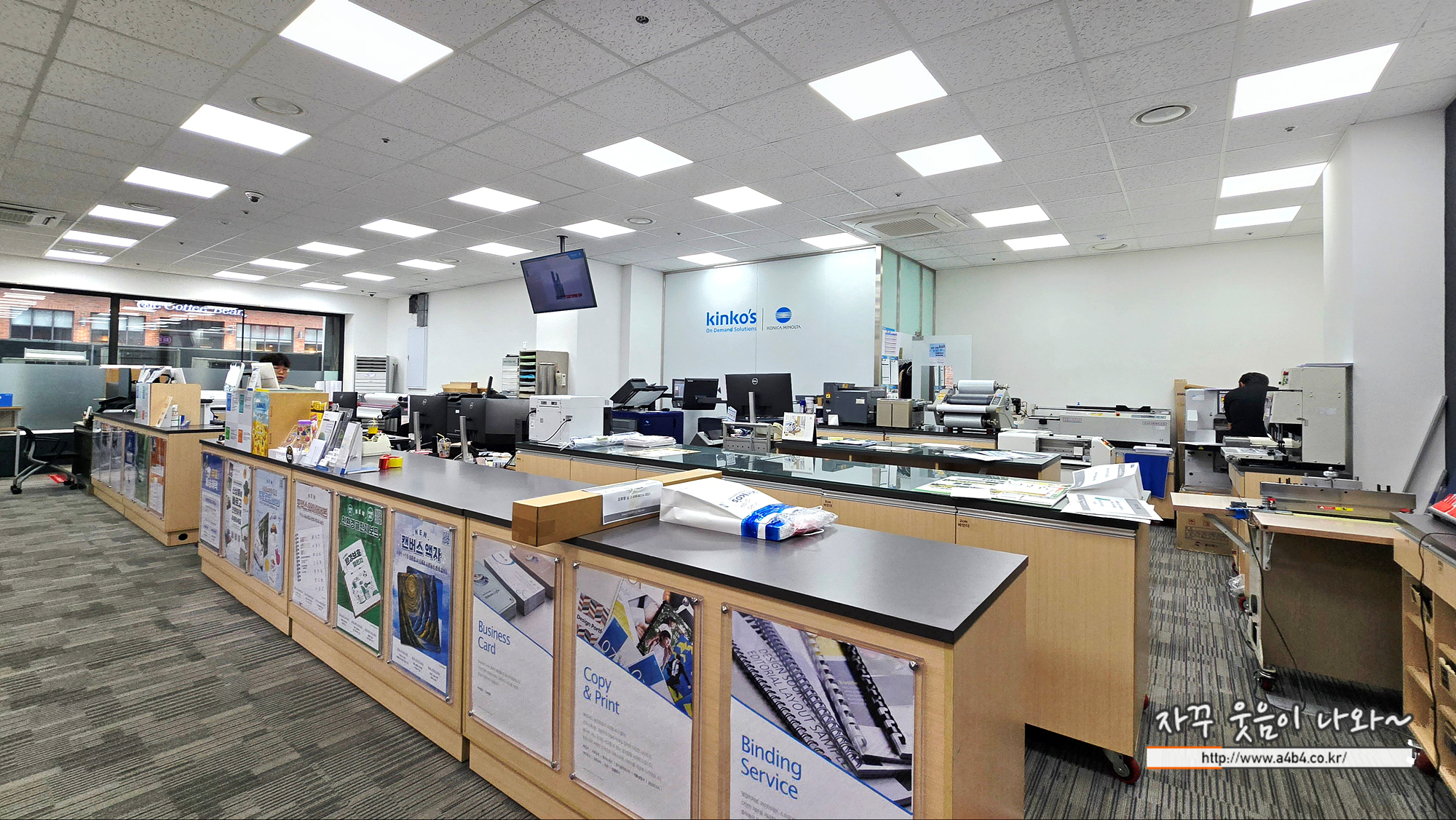 업무에 필요한 디지털 출력 및 현수막, 제본등은 물론 사진인화 포토카드 액자 등 생활에서 필요한 다양한 인쇄물 등을 이용할 수 있는 킨코스 삼성점과 킨코스 송파점 방문후기 입니다. 두 매장 모두 영업시간이나 휴무일 영업방식이 다르니 방문전 확인하세요.