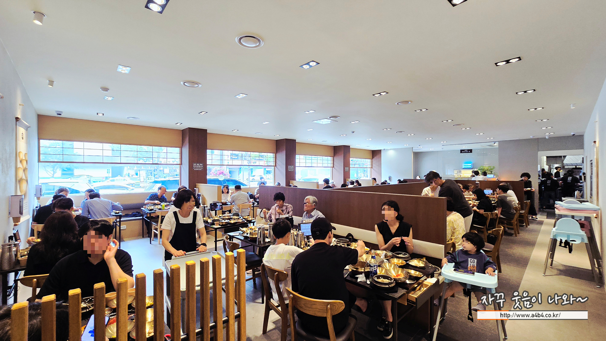 잠실 맛집 유담들밥 다온재 실내입니다. 대부분 4~6인 테이블로 구성되어 있고요. 안쪽으로는 룸 아닌 룸이 있습니다. 네이버 예약 들을 통해서 일반예약과 룸 예약 가능합니다. 룸 예약은 최소 5명부터 28명까지 가능합니다.