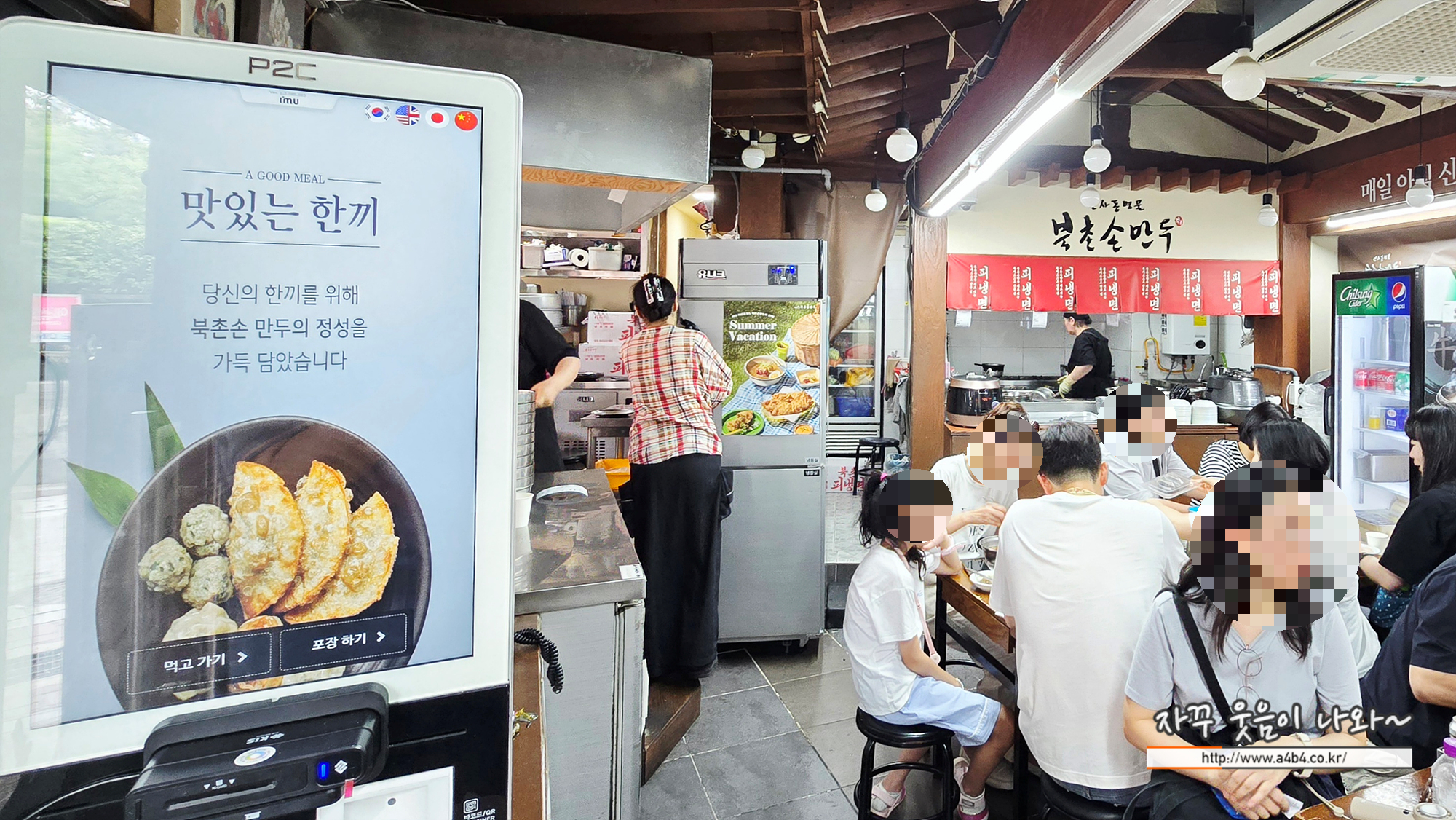 더운 여름 청와대 관람을 마치고 시원한 곳에서 냉면 한 그릇 먹으려고 왔는데. 북촌손만두 실내가 시원하지 않습니다. 만두요리를 하느라 기름을 사용하고 창문을 열어놓고 영업하다 보니, 실내가 덥네요.