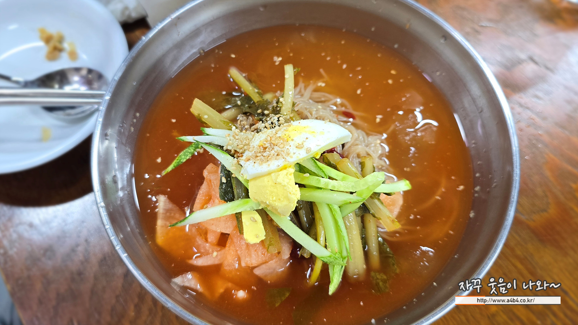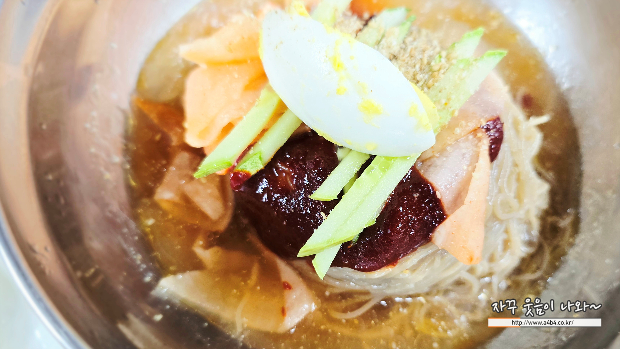 역시 열무냉면과 같이 육수가 짐짐합니다. 시원하지 않아요. 더운 여름에 물냉면 먹는 목적이 무엇일지...