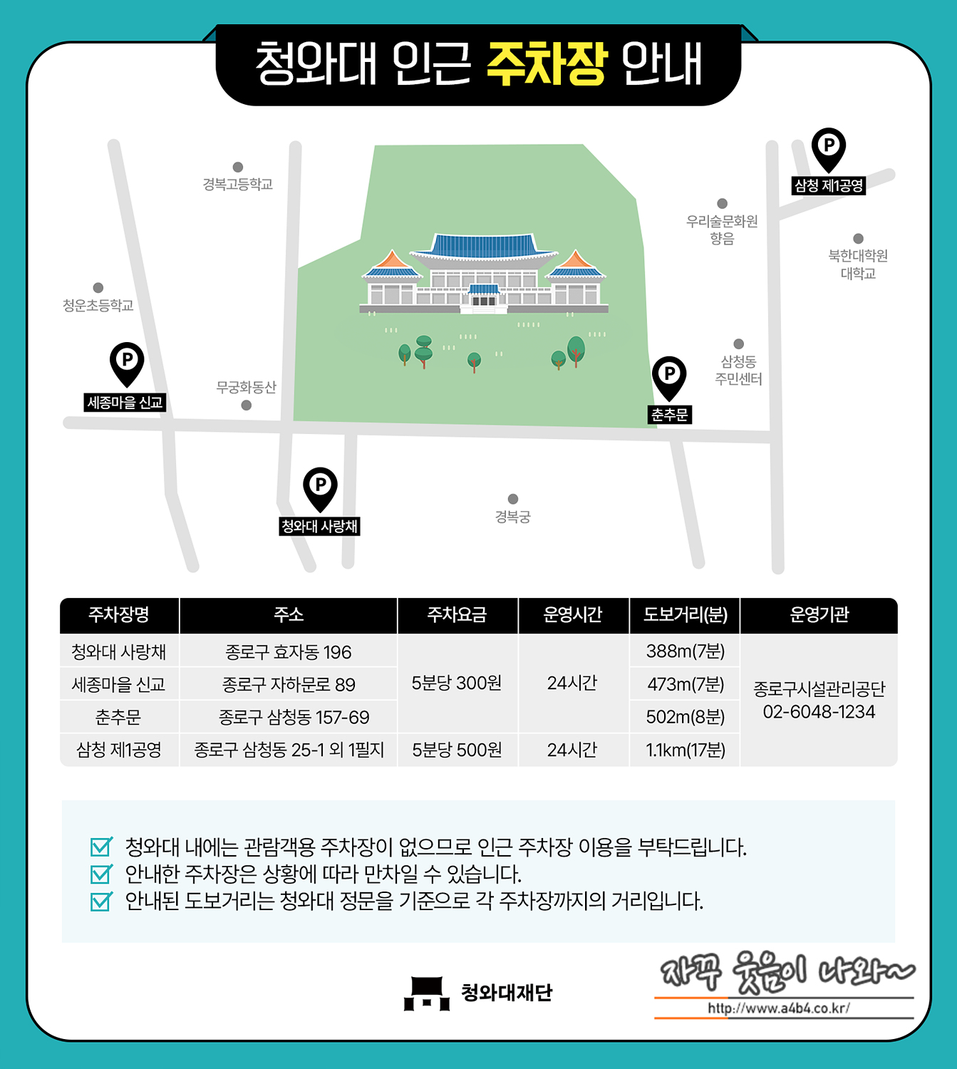 글 하단에 100% 청와대 주차 가능한 주차장 소개합니다. (지하에 시원한...)